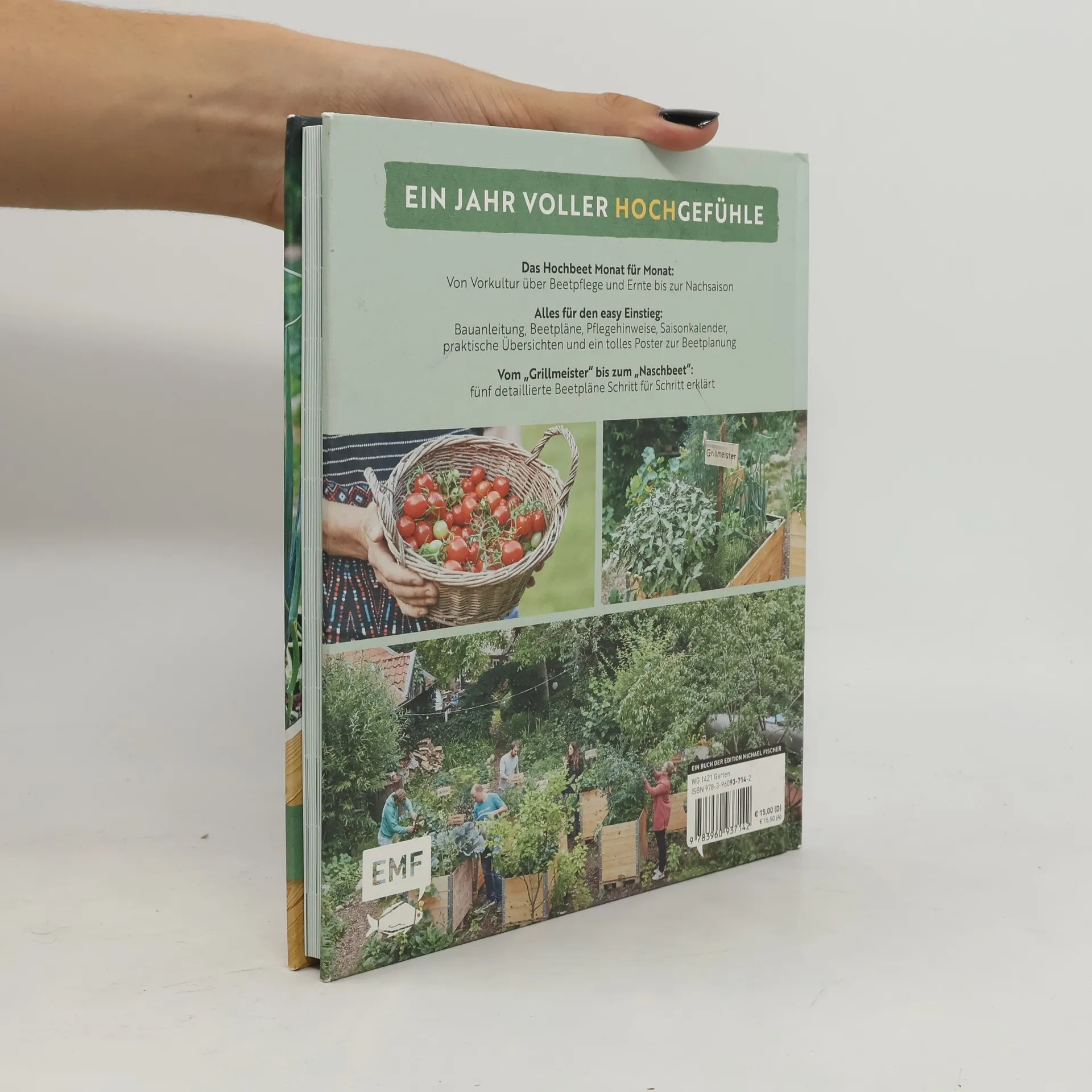 Ernteglück aus dem Hochbeet In ihrem neuen Buch bieten Die Stadtgärtner allen Selbstversorger-Fans die perfekte Anleitung, um das Hochbeet das ganze Jahr hindurch perfekt zu nutzen. Das Hochbeet ist auch für schlecht bepflanzbare Gärten oder Balkone ideal geeignet, man kann es angenehm im Stehen bearbeiten, und durch das in sich geschlossene Schicht-System kann die Aussaat früher als im Freibeet beginnen. Vom Bau und Anlage des Hochbeets bis hin zu Aussaat und Pflege sowie die besondere Behandlung in der Nachsaison wird alles anschaulich erklärt. Genießer können sich fünf Beete zu Themen wie "Grillmeister", "Salatglück" oder "Kleiner Italiener" anlegen, die das ganze Jahr frische Produkte liefert. Die Pflanzpläne werden mit stimmungsvollen Schritt-für-Schritt-Fotos detailliert erklärt. Als besonderes Extra liegt dem Buch ein Poster zur idealen Beetplanung bei.
