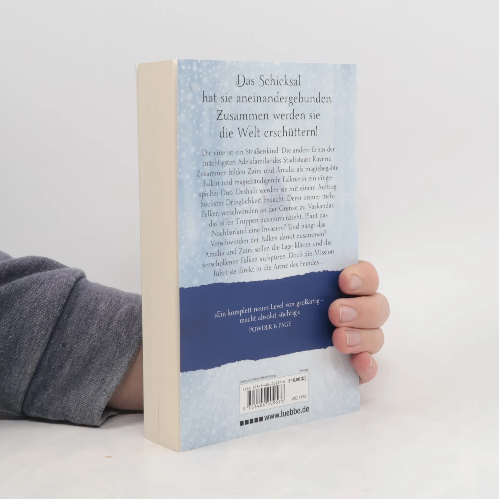 Die eine ist ein Straßenkind. Die andere Erbin der mächtigsten Adelsfamilie der Stadt. Zusammen bilden sie als magiebegabte Falkin und magiebändigende Falknerin ein eingespieltes Duo. Deshalb werden Zaira und Amalia mit einem wichtigen Auftrag bedacht. Immer mehr Falken verschwinden an der Grenze zum Nachbarland Vaskander. Die beiden jungen Frauen sollen herausfinden, wer dahintersteckt, und die Falken wenn möglich befreien. Doch die Mission führt sie direkt in die Arme des Feindes ...