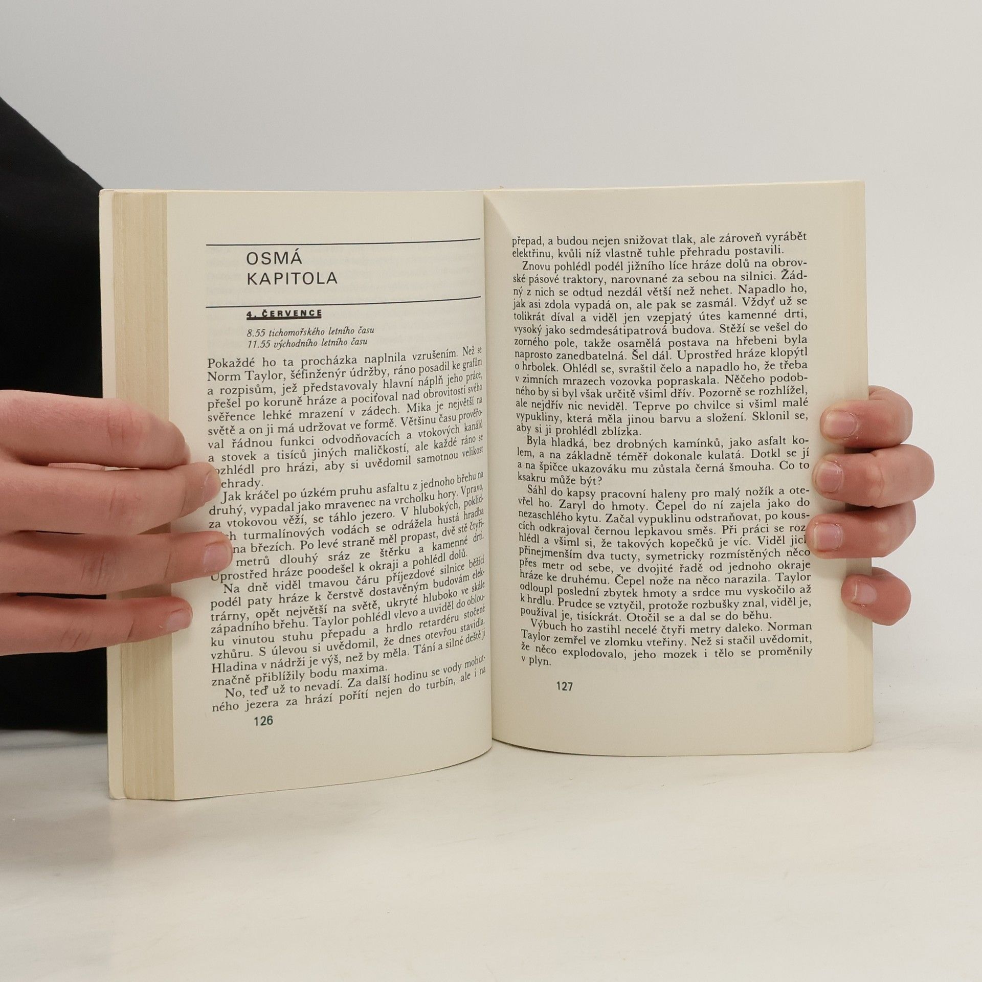 Katastrofický román. Sabotáž a následný sesuv půdy na jedné z největších přehrad na řece Kolumbii způsobí obrovskou záplavovou vlnu. Ta ničí vše, co jí stojí v cestě. Rychle se blíží nejen k atomové elektrárně, umístěné níže po proudu řeky, ale také k hustě obydlenému Portlandu.
