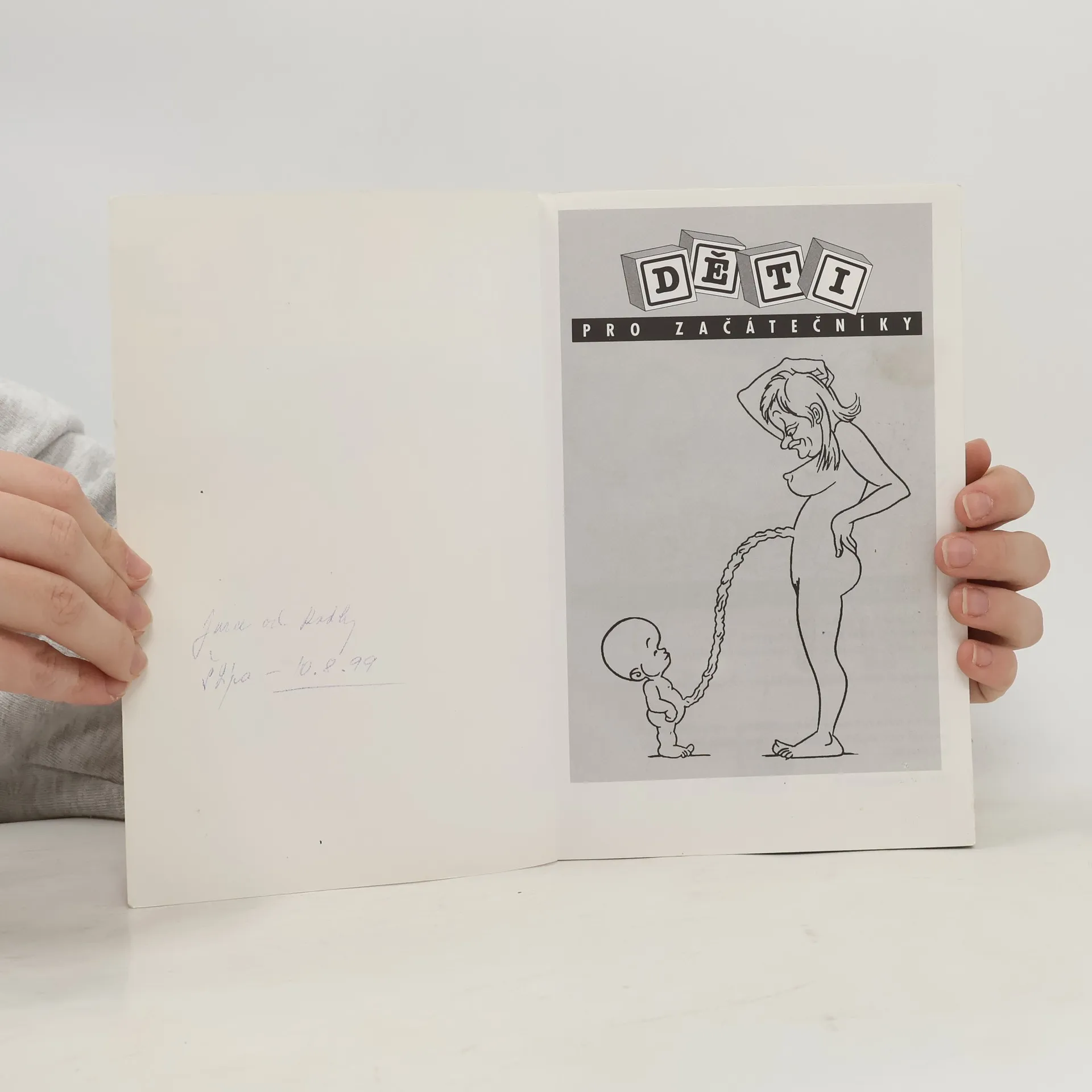 Děti pro začátečníky začínají... na samém začátku. Připravte se na to, že budete krmeni vtipnou a zároveň superinformativní směsicí téměř všeho, co potřebujete znát o početí, prenatálním vývoji, porodu, péči o dítě od novorozence až po batole, o genetice, vlivu okolí, psychologii dítěte..., okořeněnou ještě spoustou dalších zajímavostí. Setkáte se s Madonnou, Michaelem Jacksonem, Princem, Stalinem, saddámem Husajnem a dalšími a podívate se na jejich (a své) dětské Já.