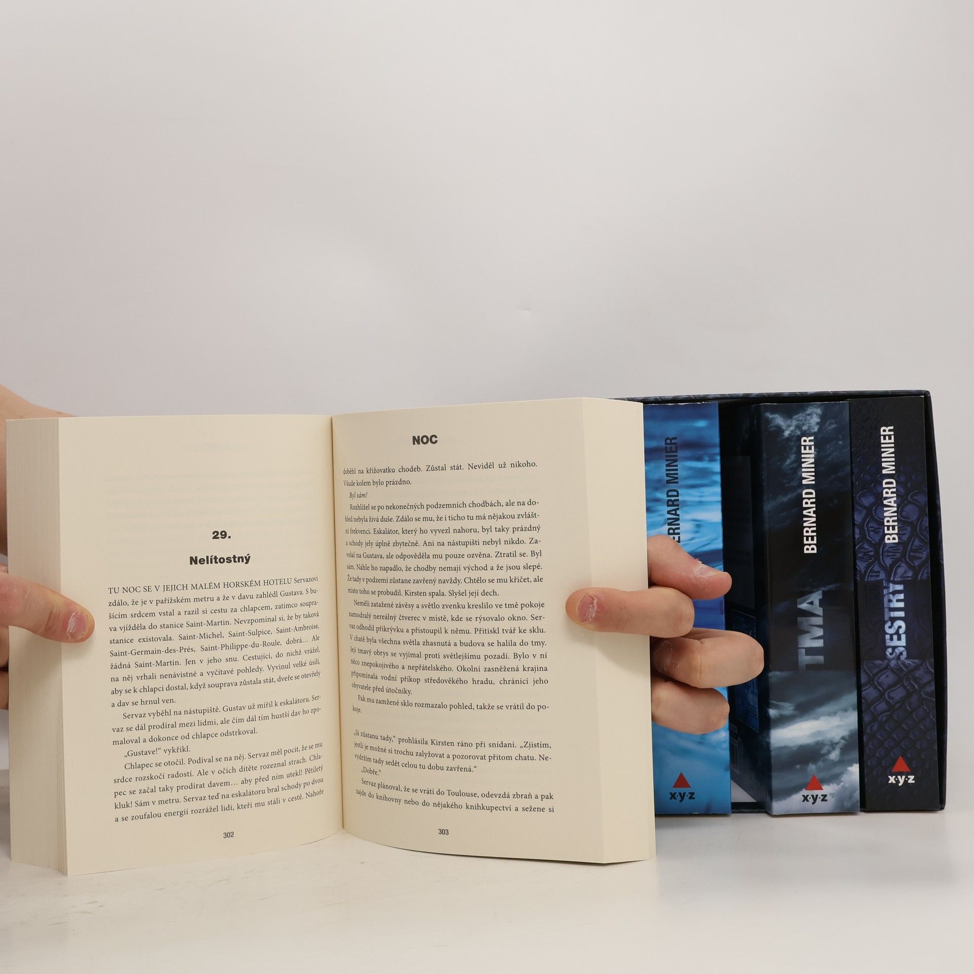 Všech pět knih s komisařem Martinem Servazem v jednom balení. V prvním díle se vyšetřování přesouvá do francouzských Pyrenejí, kde komisař čelí sériovému vrahovi Julianu Hirtmannovi. Jejich cesty se v dalších dílech znovu protnou, přičemž některé události zasahují do Servazova osobního života. V druhém díle je v Marsacu nalezena mrtvá žena, spoutaná a utopená ve vaně. Vrah se zdá být její žák a milenec, který si nic nepamatuje. Když je zavražděn místní chovatel psů, Servaz se musí ponořit do své minulosti, aby případ vyřešil. Třetí kniha sleduje moderátorku Christine, která obdrží dopis od ženy plánující sebevraždu, zatímco Servaz se zotavuje z vyhoření. Čtvrtý díl přináší vraždu na ropné plošině, kde se Servaz setkává se sériovým vrahem, jehož fotografie ho pronásledují. V pátém díle se Servaz vrací k neúspěšnému vyšetřování dvojnásobné vraždy sester z minulosti a pokouší se najít spojení mezi oběma případy. Tato série kombinuje napínavé zločiny, mrazivou atmosféru a houževnatého policistu, což zaručuje strhující čtení až do poslední stránky.