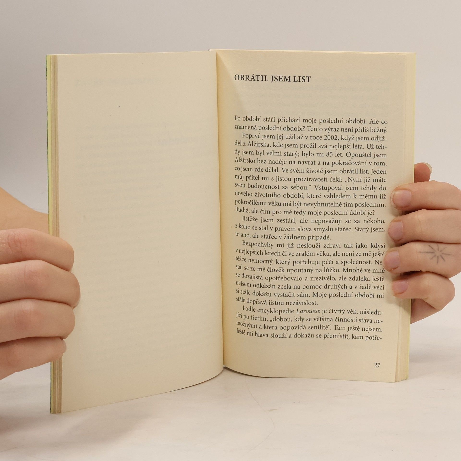 Soubor tří úvah francouzského jezuity o tom, co přináší poslední etapa lidského života a nad čím nás nutí se zamýšlet. Autor vychází jak z bohatých životních zkušeností, tak i z pohledu křesťanské víry. Proto se nezabývá jen životním bilancováním, ale odvažuje se mluvit otevřeně o posledních věcech člověka a životě po smrti. Jde o přístupně napsanou publikaci, která osloví především seniory, ale s nimi i všechny ty, kteří je duchovně doprovázejí nebo jen lidsky sdílejí jejich hledání smyslu a naděje.