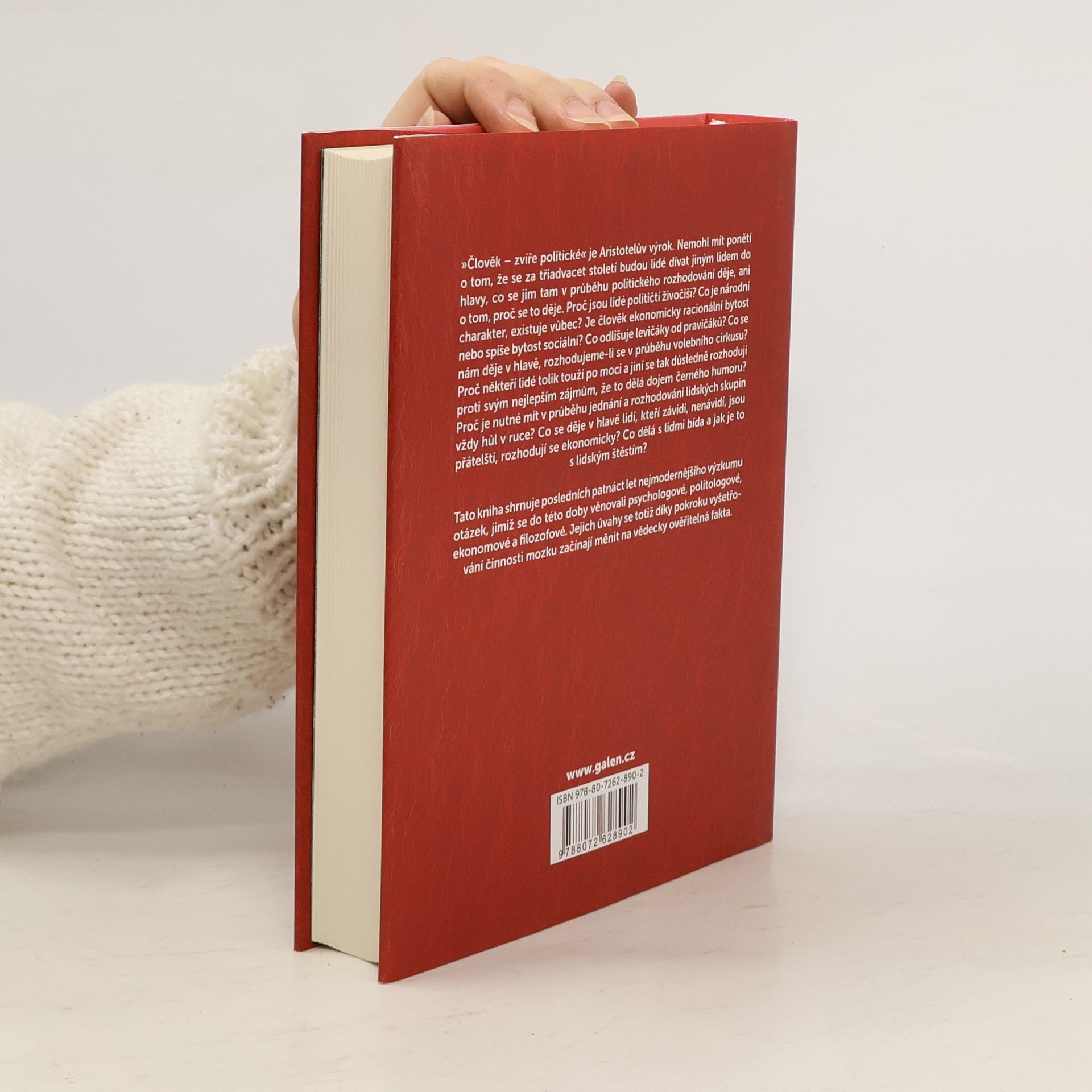 „Člověk - zvíře politické“ je Aristotelův výrok. Nemohl mít ponětí o tom, že se za třiadvacet století budou lidé dívat jiným lidem do hlavy, co se jim tam v průběhu politického rozhodování děje, ani o tom, proč se to děje. Proč jsou lidé političtí živočiši? Co je národní charakter, existuje vůbec? Je člověk ekonomicky racionální bytost nebo spíše bytost sociální? Co odlišuje levičáky od pravičáků? Co se nám děje v hlavě, rozhodujeme-li se v průběhu volebního cirkusu? Proč někteří lidé tolik touží po moci a jiní se tak důsledně rozhodují proti svým nejlepším zájmům, že to dělá dojem černého humoru? Proč je nutné mít v průběhu jednání a rozhodování lidských skupin vždy hůl v ruce? Co se děje v hlavě lidí, kteří závidí, nenávidí, jsou přátelští, rozhodují se ekonomicky? Co dělá s lidmi bída a jak je to s lidským štěstím? Tato kniha shrnuje posledních patnáct let nejmodernějšího výzkumu otázek, jimiž se do této doby věnovali psychologové, politologové, ekonomové a filosofové. Jejich úvahy se totiž díky pokroku vyšetřování činnosti mozku začínají měnit na vědecky ověřitelná fakta.