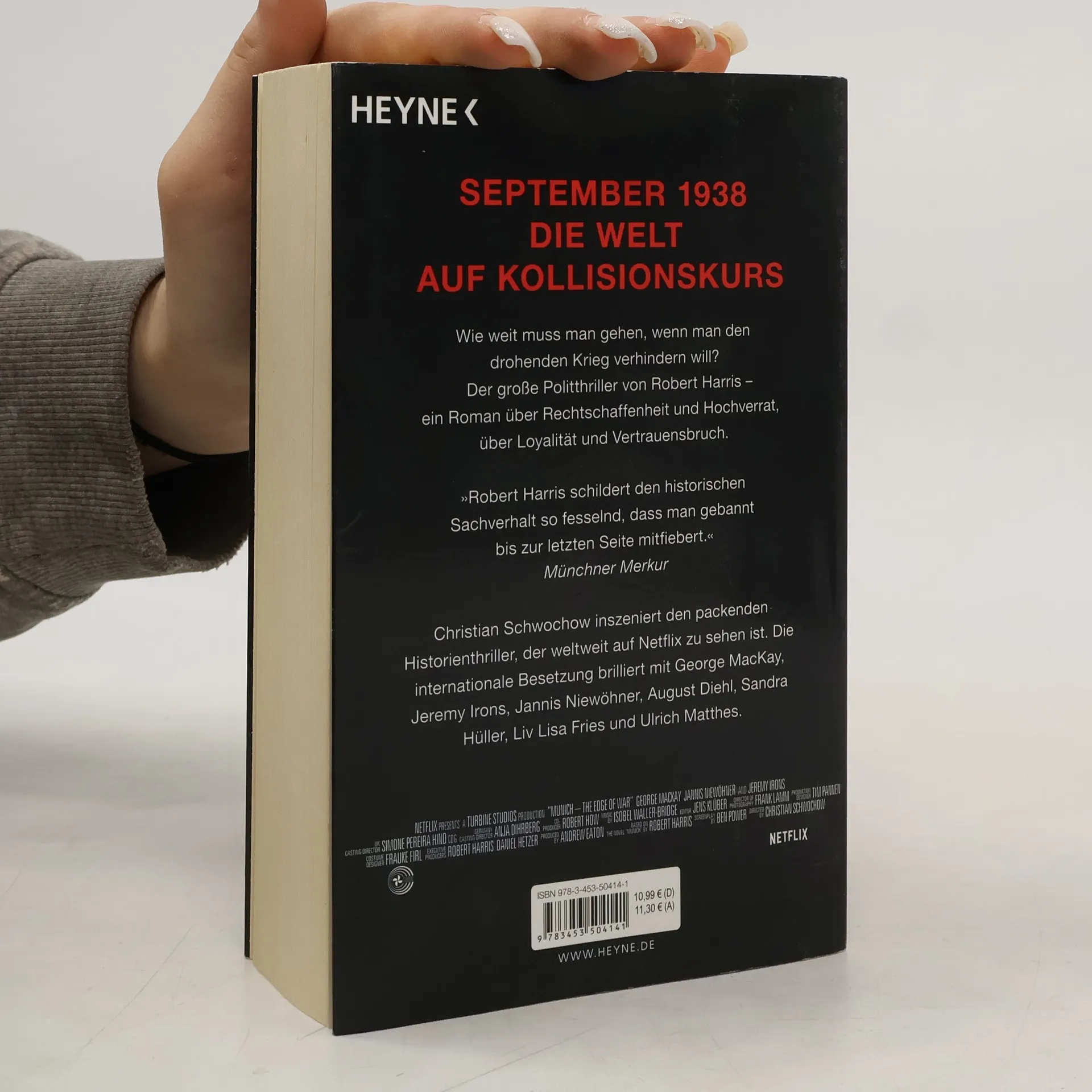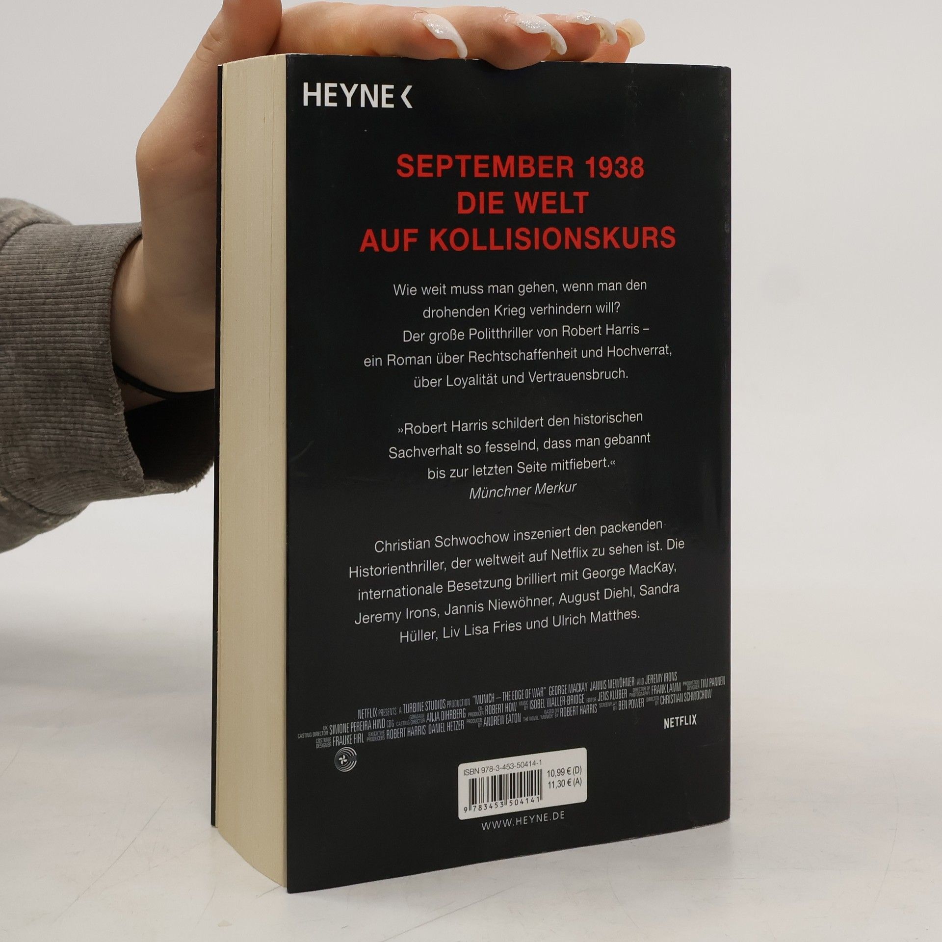 Die Romanvorlage zum neuen Netflix-Politthriller September 1938. In München treffen sich Hitler, Chamberlain, Mussolini und Daladier zu einer kurzfristig einberufenen Konferenz. Der Weltfrieden hängt am seidenen Faden. Im Gefolge des britischen Premierministers Chamberlain befindet sich Hugh Legat aus dem Außenministerium, der ihm als Privatsekretär zugeordnet ist. Auf der deutschen Seite gehört Paul von Hartmann aus dem Auswärtigen Amt in Berlin zum Kreis der Anwesenden. Den Zugang zur Delegation hat er sich erschlichen. Insgeheim ist er Mitglied einer Widerstandszelle gegen Hitler. Legat und von Hartmann verbindet eine Freundschaft, seit sie in Oxford gemeinsam studiert haben. Nun kreuzen sich ihre Wege wieder. Wie weit müssen sie gehen, wenn sie den drohenden Krieg verhindern wollen? Können sie sich überhaupt gegenseitig trauen? Ein Roman über Hochverrat und Unbestechlichkeit, über Loyalität und Vertrauensbruch. Und wie immer bei Robert Harris lassen sich über die historischen Figuren und Ereignisse erhellende Bezüge zur aktuellen Weltpolitik herstellen.