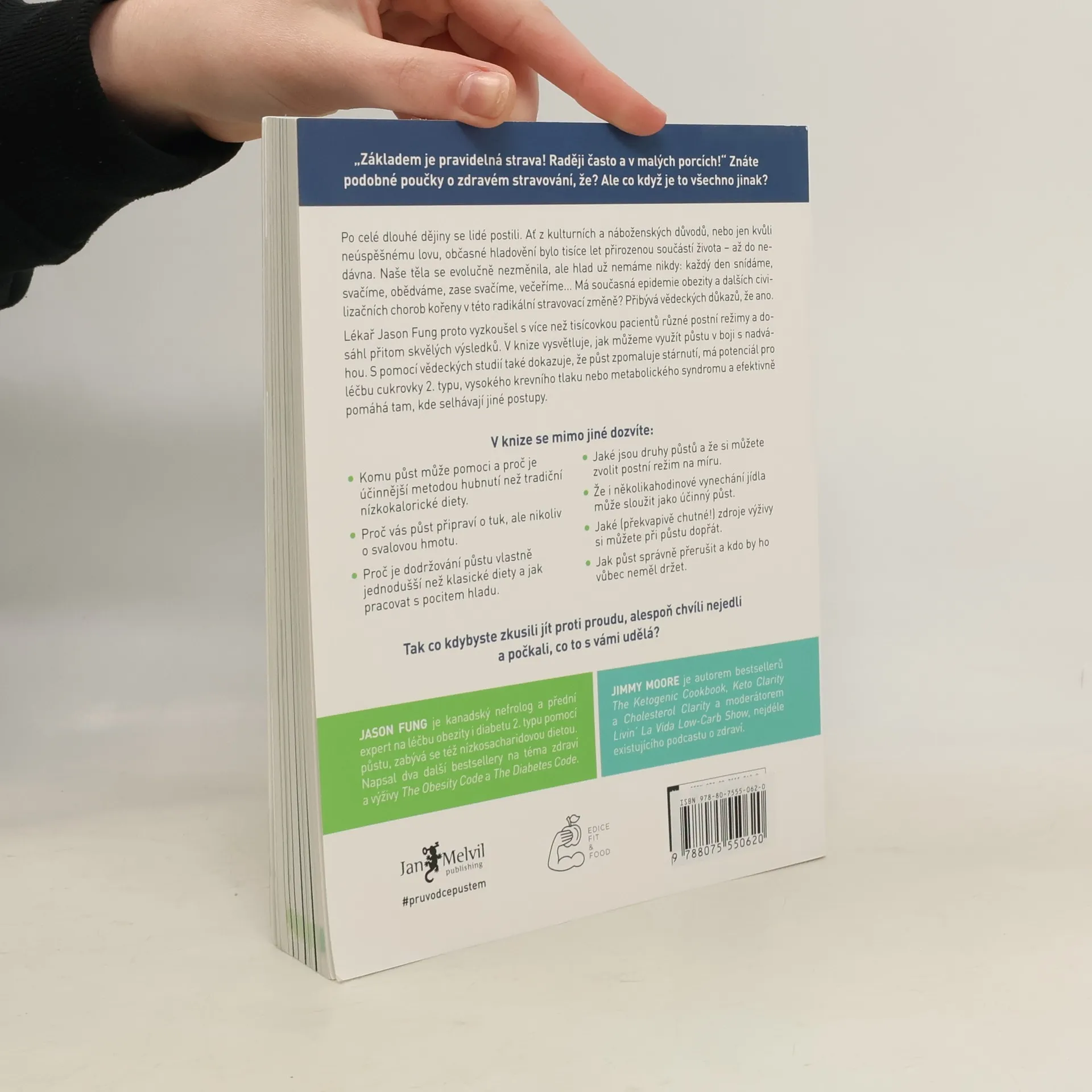 Po celé dějiny se lidé postili z různých důvodů, ať už kulturních, náboženských nebo z nedostatku jídla. Hladovění bylo přirozenou součástí života, ale dnes se stravovací návyky radikálně změnily. Tato změna může být spojena s rostoucími problémy, jako je obezita a další civilizační choroby. Lékař Jason Fung zkoumal různé postní režimy s více než tisícovkou pacientů a dosáhl výjimečných výsledků. Vysvětluje, jak může půst pomoci v boji proti nadváze a přináší vědecké důkazy o jeho prospěšnosti, včetně zpomalení stárnutí a léčby cukrovky 2. typu, vysokého krevního tlaku či metabolického syndromu. Zjistíte, komu půst může pomoci a proč je efektivnější než tradiční diety. Půst vás zbaví tuku, nikoli svalové hmoty, a je jednodušší než dodržování klasických diet. Seznámíte se s různými typy půstů a možností zvolit si režim na míru. I několikahodinové vynechání jídla může být účinné. Kniha také nabízí překvapivé a chutné zdroje výživy během půstu a rady, jak ho správně přerušit. Zjistíte, kdo by měl půst vynechat. Co kdybyste zkusili jít proti proudu a na chvíli se zdrželi jídla?
