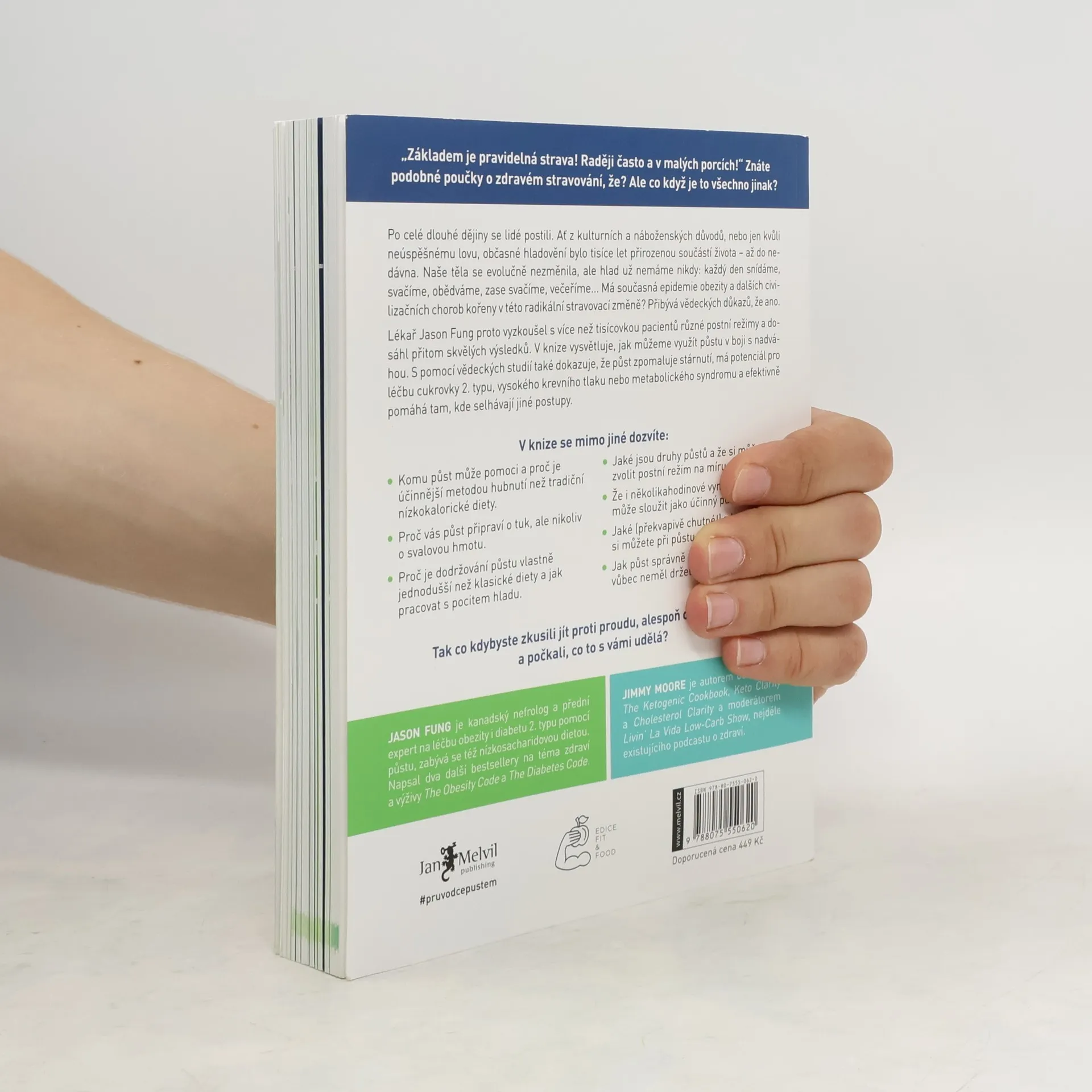 Po celé dějiny se lidé postili z různých důvodů, ať už kulturních, náboženských nebo z nedostatku jídla. Hladovění bylo přirozenou součástí života, ale dnes se stravovací návyky radikálně změnily. Tato změna může být spojena s rostoucími problémy, jako je obezita a další civilizační choroby. Lékař Jason Fung zkoumal různé postní režimy s více než tisícovkou pacientů a dosáhl výjimečných výsledků. Vysvětluje, jak může půst pomoci v boji proti nadváze a přináší vědecké důkazy o jeho prospěšnosti, včetně zpomalení stárnutí a léčby cukrovky 2. typu, vysokého krevního tlaku či metabolického syndromu. Zjistíte, komu půst může pomoci a proč je efektivnější než tradiční diety. Půst vás zbaví tuku, nikoli svalové hmoty, a je jednodušší než dodržování klasických diet. Seznámíte se s různými typy půstů a možností zvolit si režim na míru. I několikahodinové vynechání jídla může být účinné. Kniha také nabízí překvapivé a chutné zdroje výživy během půstu a rady, jak ho správně přerušit. Zjistíte, kdo by měl půst vynechat. Co kdybyste zkusili jít proti proudu a na chvíli se zdrželi jídla?