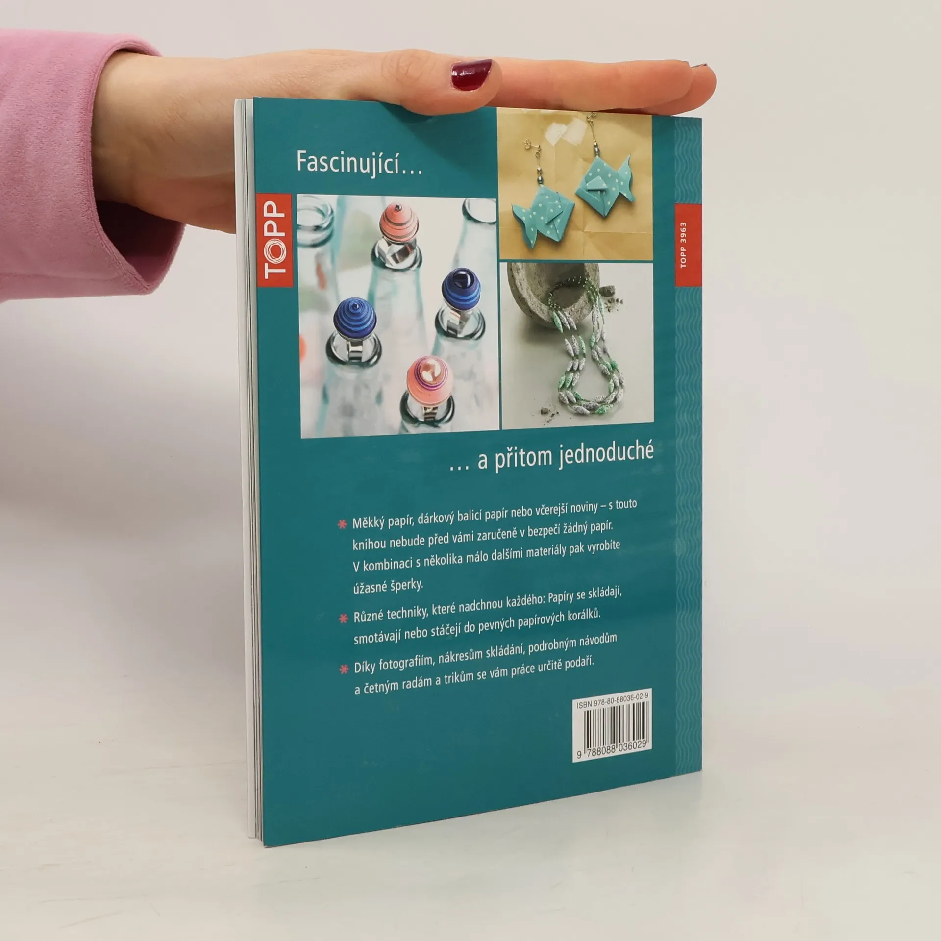 Měkký papír, dárkový balicí papír nebo včerejší noviny – s touto knihou nebude před vámi zaručeně v bezpečí žádný papír. V kombinaci s několika málo dalšími materiály si z něj vyrobíte různými technikami úžasné šperky. Papíry stačí poskládat, smotat nebo stočit do pevných papírových korálků. Díky fotografiím, nákresům skládání, podrobným návodům a četným radám a trikům se vám jejich výroba určitě podaří.