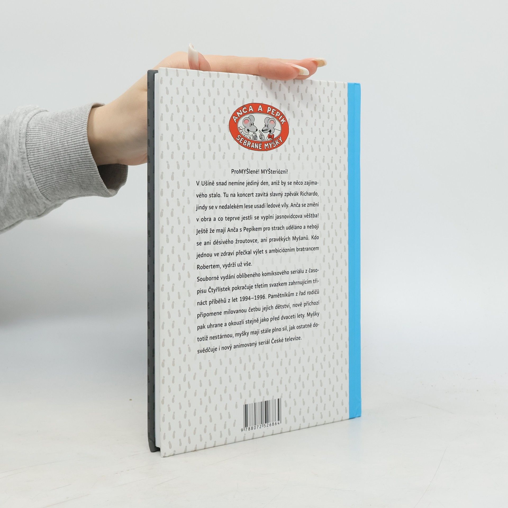 ProMYŠlené! MYŠteriózní! V Ušíně snad nemine jediný den, aniž by se něco zajímavého stalo. Tu na koncert zavítá slavný zpěvák Richardo, jindy se v nedalekém lese usadí ledové víly. Anča se změní v obra a co teprve jestli se vyplní jasnovidcova věštba! Ještě že mají Anča s Pepíkem pro strach uděláno a nebojí se ani děsivého žroutovce, ani pravěkých Myšanů. Kdo jednou ve zdraví přečkal výlet s ambiciózním bratrancem Robertem, vydrží už vše. Souborné vydání oblíbeného komiksového seriálu z časopisu Čtyřlístek pokračuje třetím svazkem zahrnujícím čtrnáct příběhů z let 1994–1996. Pamětníkům z řad rodičů připomene milovanou četbu jejich dětství, nově příchozí pak uhrane a okouzlí stejně jako před dvaceti lety. Myšky totiž nestárnou, myšky mají stále plno sil, jak ostatně dosvědčuje i nový animovaný seriál České televize