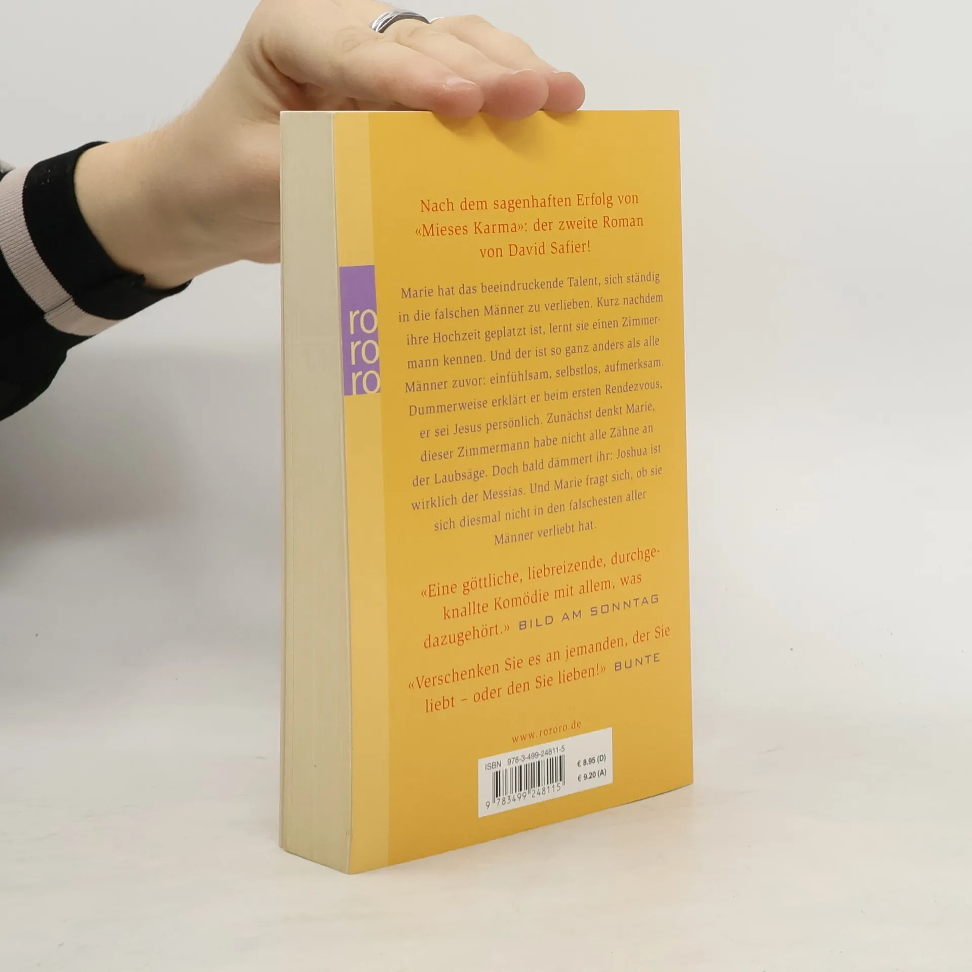 Nach dem sagenhaften Erfolg von «Mieses Karma»: Der zweite Roman von David Safier! Marie hat das beeindruckende Talent, sich ständig in die falschen Männer zu verlieben. Kurz nachdem ihre Hochzeit geplatzt ist, lernt sie einen Zimmermann kennen. Und der ist so ganz anders als alle Männer zuvor: einfühlsam, selbstlos, aufmerksam. Dummerweise erklärt er beim ersten Rendezvous, er sei Jesus persönlich. Zunächst denkt Marie, dieser Zimmermann habe nicht alle Zähne an der Laubsäge. Doch bald dämmert ihr: Joshua ist wirklich der Messias. Und Marie fragt sich, ob sie sich diesmal nicht in den falschesten aller Männer verliebt hat. «Verschenken Sie es an jemanden, der Sie liebt – oder den Sie lieben!» (Bunte)