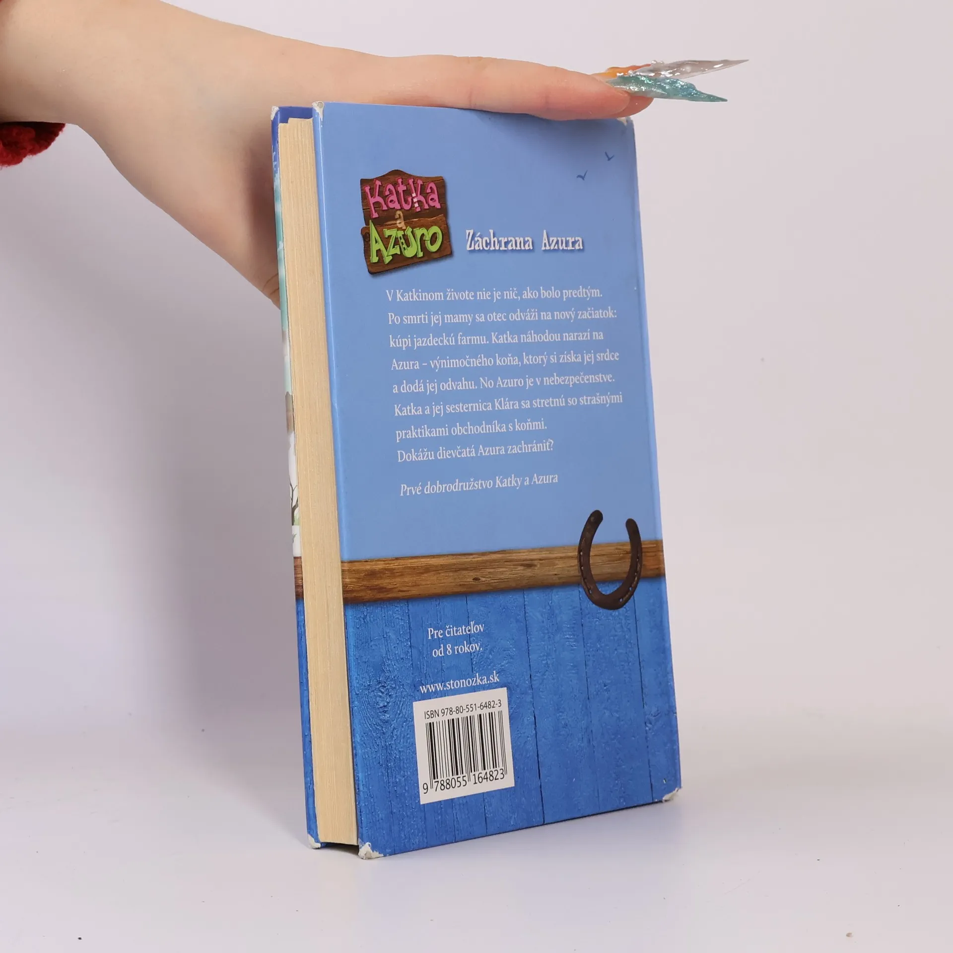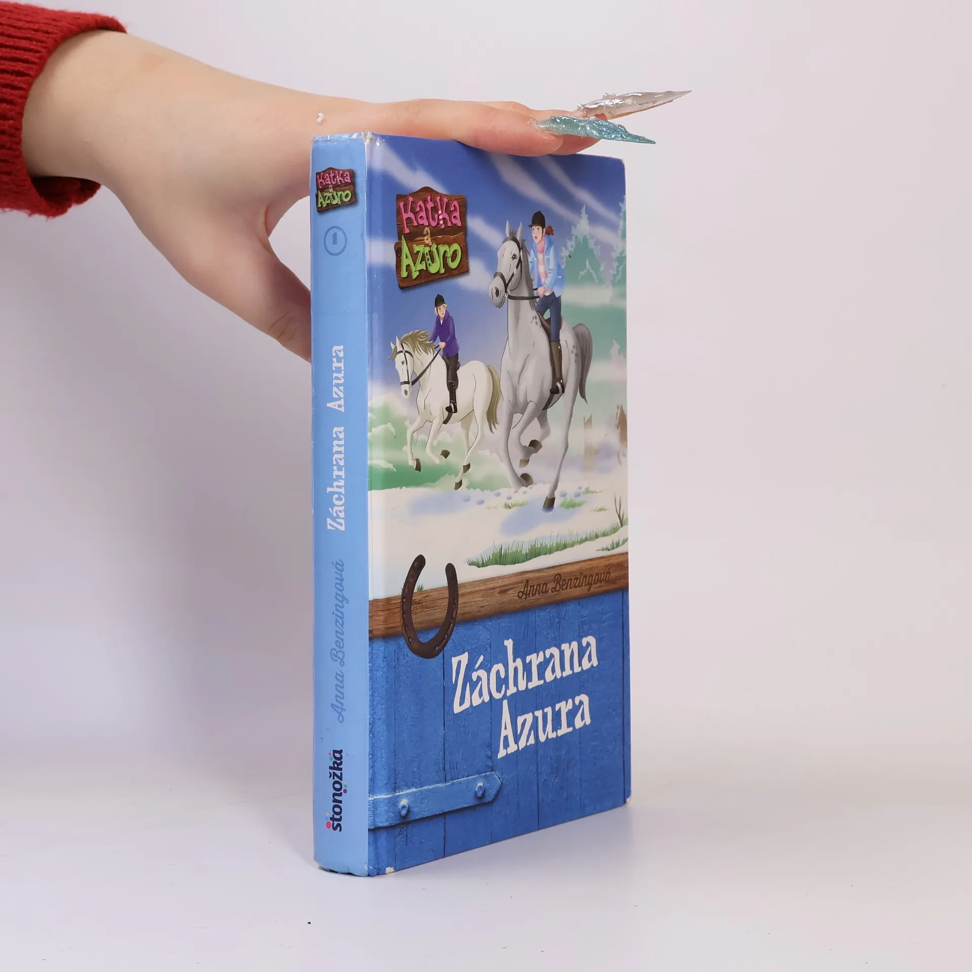 Záchrana Azura V Katkinom živote nie je nič, ako bolo predtým. Po smrti jej mamy sa otec odváži na nový začiatok: kúpi jazdeckú farmu. Katka náhodou narazí na Azura – výnimočného koňa, ktorý si získa jej srdce a dodá jej odvahu. No Azuro je v nebezpečenstve. Katka a jej sesternica Klára sa stretnú so strašnými praktikami obchodníka s koňmi. Dokážu dievčatá Azura zachrániť? Prvé dobrodružstvo Katky a Azura