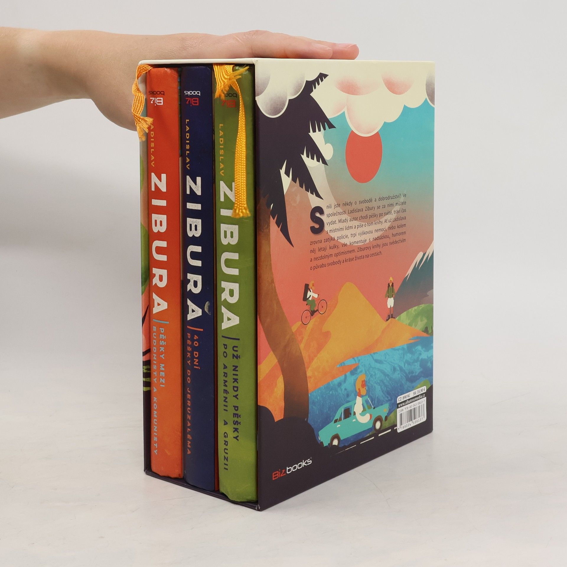 Rádi objevujete a sníte o dalekých cestách? Vydejte se za svobodou ve společnosti Ladislava Zibury. Mladý autor chodí pěšky světem, tráví čas s hodnými lidmi a pátrá po dobrodružství. Své cesty líčí s nadsázkou, humorem a nakažlivým optimismem. Ziburovy knihy jsou díky tomu svědectvím o půvabu svobody a kráse života na cestách. Zasněte se u nich a nechte si vyprávět příběhy ze světa mnohem lepšího, než je ten v televizi. V dárkovém trojboxu najdete tři knížky – 40 dní pěšky do Jeruzaléma, Pěšky mezi buddhisty a komunisty, Už nikdy pěšky po Arménii a Gruzii plus pexeso na motivy ilustrací ze Ziburových knih z dílny ilustrátorského dua Tomski & Polanski.