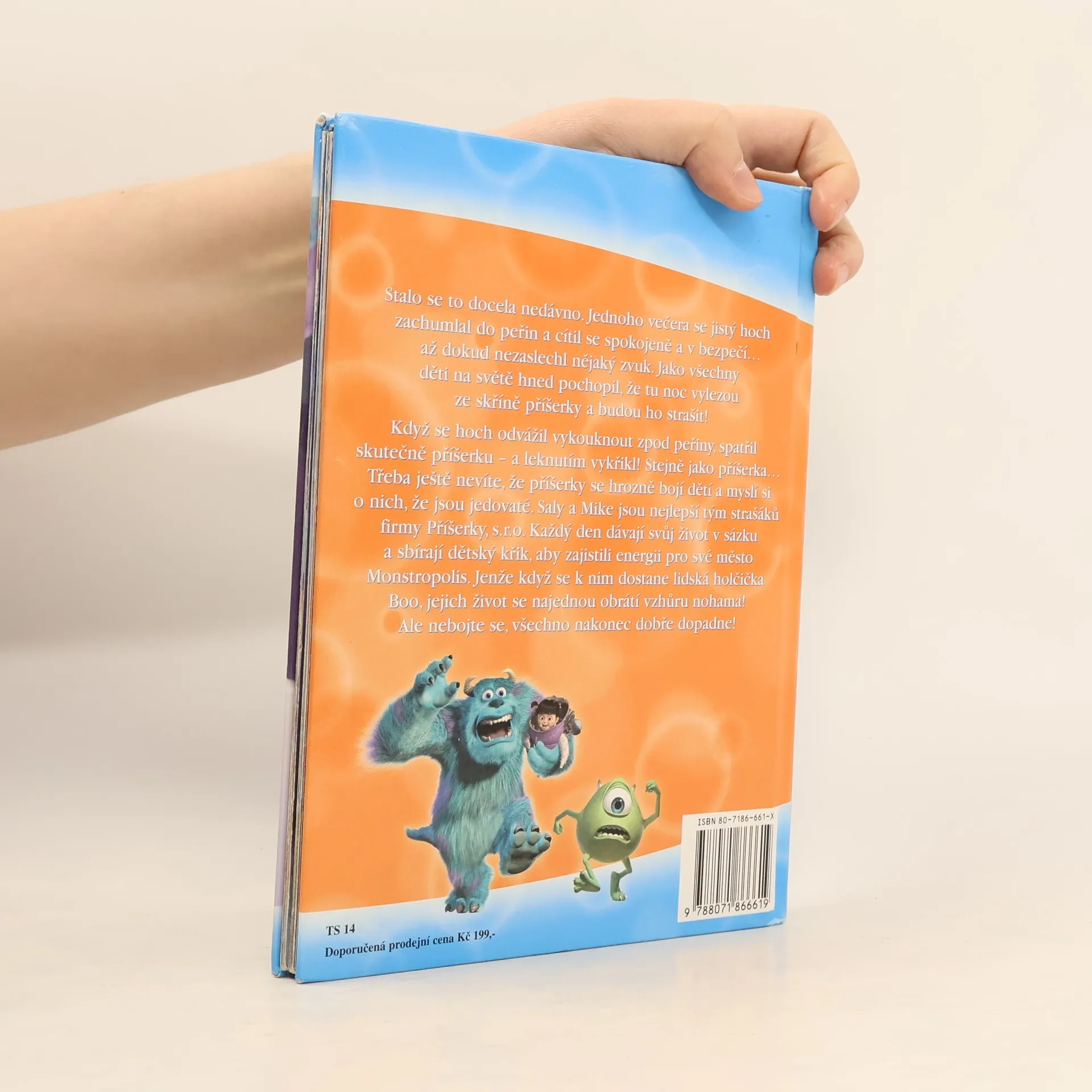 Věděli jste, že kromě lidského světa existuje také svět příšerek? Ty bydlí ve městě Monstropolis a v noci navštěvují dětské pokojíčky. Příšerky si ale musejí dávat velký pozor, aby se dětí nedotkly, protože se bojí, že děti jsou jedovaté a nebezpečné. Jen si představte tu hrůzu, kdyby se některé dítě dostalo až do světa příšerek! Co by si příšerky počaly? O tom se dočtete na stránkách této knížky.