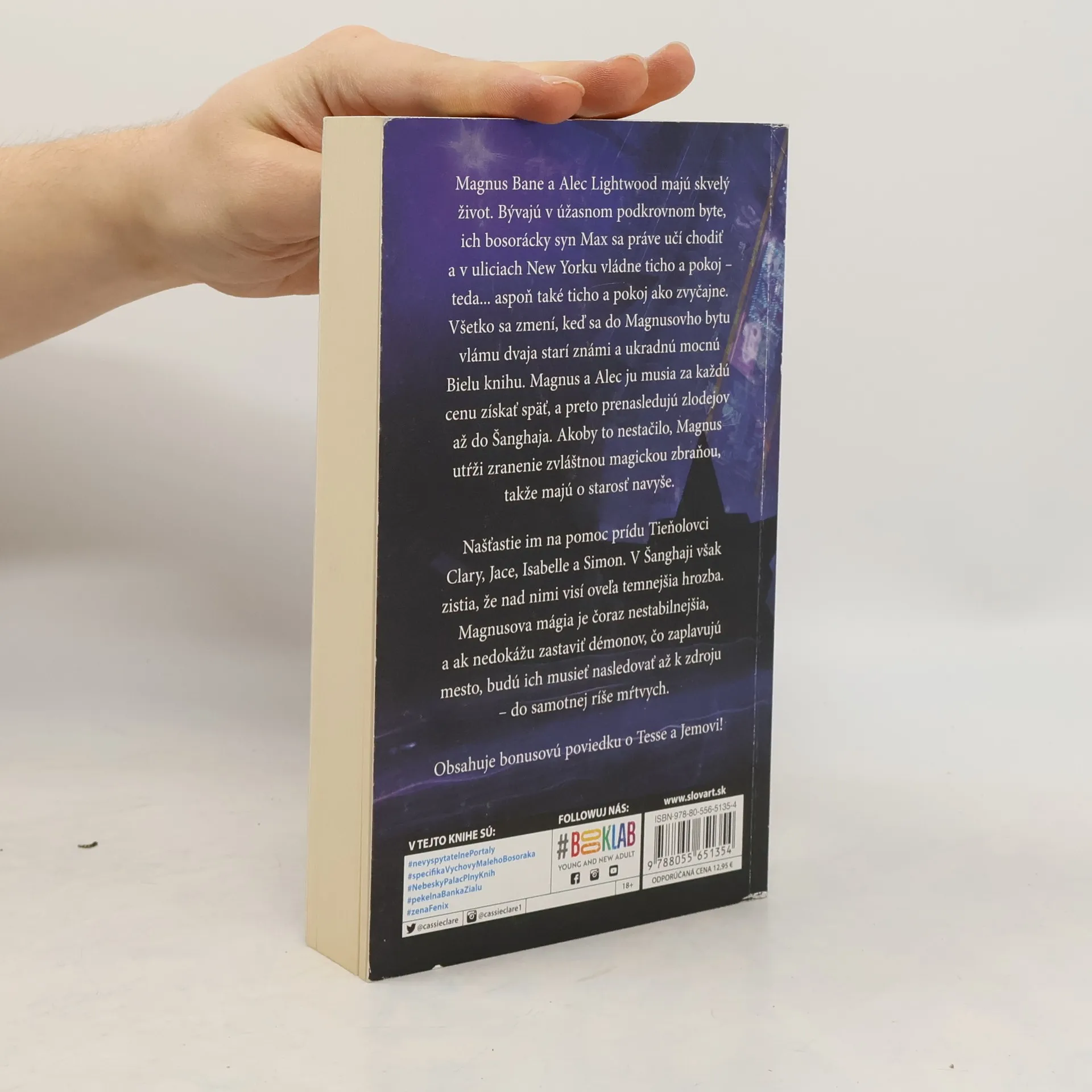 Nenechajte si ujsť stretnutie so starými známymi z tieňoloveckého sveta v druhej časti Najstarších kliatob! Magnus Bane a Alec Lightwood majú skvelý život. Bývajú v úžasnom podkrovnom byte, ich bosorácky syn Max sa práve učí chodiť a v uliciach New Yorku vládne ticho a pokoj - teda aspoň také ticho a pokoj ako zvyčajne. Všetko sa zmení, keď sa do Magnusovho bytu vlámu dvaja starí známi a ukradnú mocnú Bielu knihu. Magnus a Alec ju musia za každú cenu získať späť, a preto prenasledujú zlodejov až do Šanghaja. Akoby to nestačilo, Magnus utŕžil zranenie zvláštnou magickou zbraňou, takže majú ešte o jednu starosť navyše. Našťastie im na pomoc príde Clary, Jace, Isabelle a nový Tieňolovec Simon. V Šanghaji však zistia, že nad nimi visí oveľa temnejšia hrozba. Magnusova mágia je čoraz nestabilnejšia, a ak nedokážu zastaviť démonov, čo zaplavujú mesto, budú ich musieť nasledovať až k zdroju - do samotnej ríše mŕtvych.