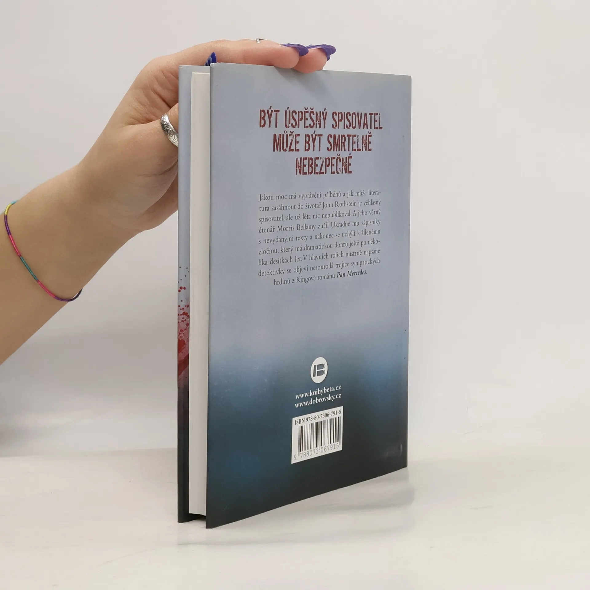 Kniha o tom, jakou moc má vyprávění příběhů a jak literatura utváří život. John Rothstein je věhlasný spisovatel, avšak léta už nic nepublikoval, a navíc se začal věnovat reklamě. A jeho věrný čtenář Morris Bellamy zuří. Spisovatele nakonec zabije a vyloupí mu sejf s rukopisy nevydaných knih. Kořist si ukryje, ale pak se ocitne ve vězení kvůli jinému zločinu. Po několika desítkách let najde schovaný lup malý chlapec, ale Morris Bellamy se pokladu za žádnou cenu nechce vzdát… V hlavních rolích mistrně napsaného románu se objeví nesourodá trojice pátračů z Kingovy detektivky Pan Mercedes.