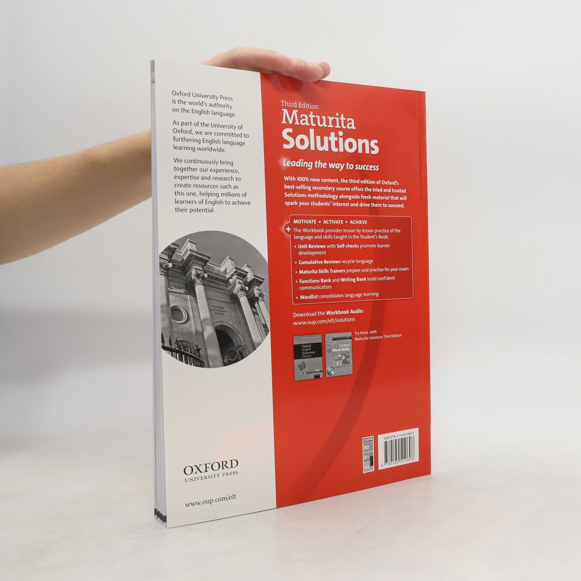 With 100% new content, the third edition of Oxford's best-selling secondary course offers the tried and trusted Solutions methodology alongside fresh and diverse material that will spark your students' interest and drive them to succeed. The Solutions Workbook is the perfect partner to the Student's Book, and helps consolidate the material taught in class. It contains further lesson-by-lesson practice for students to complete in their own time, as well as reference material for those who need extra support. With the audio available online, students can benefit from extra listening practice, and can use the unit review sections to assess their own progress and build confidence.