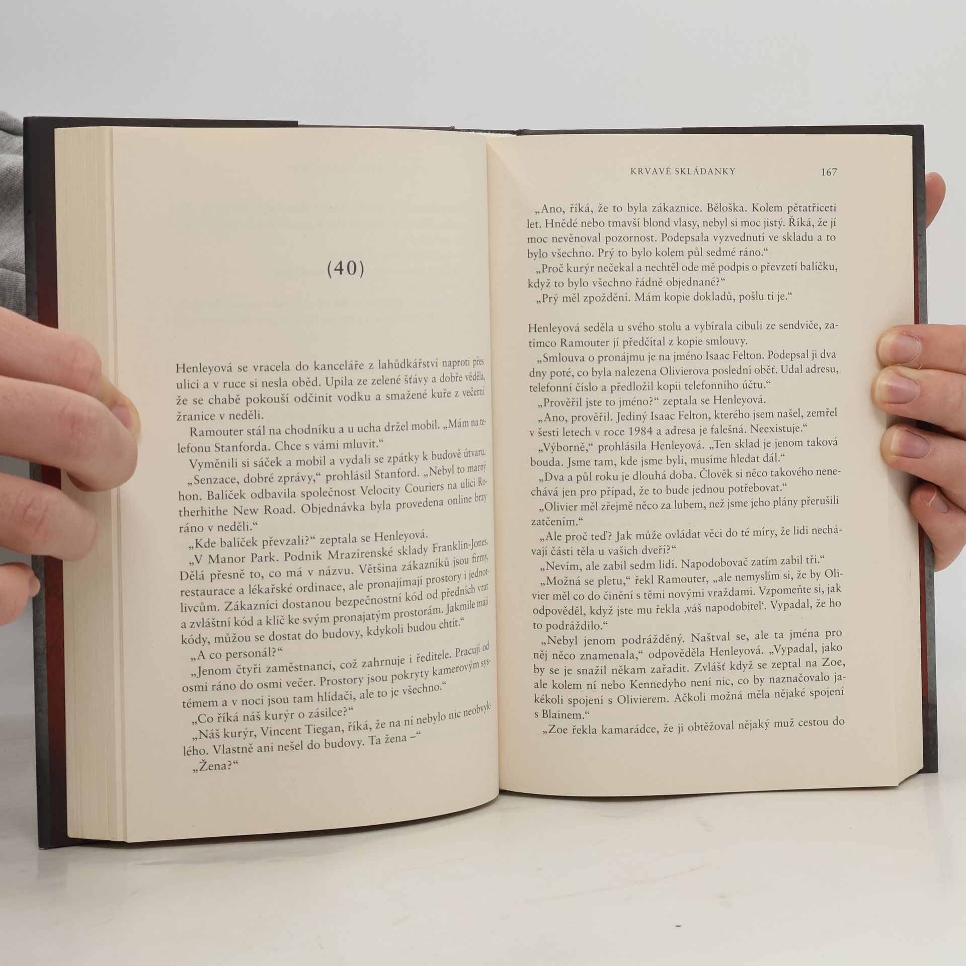 Na londýnské periferii jsou nalezeny části lidských těl svědčící o brutálních vraždách. Jejich vyšetřením je pověřena policejní inspektorka Anjelica Henleyová. Vypadá to, že se objevil vrah napodobitel, který se snaží vzdát poctu jinému známému a již odsouzenému zločinci. Shodou okolností má právě s tímto vrahem Henleyová velmi nehezké osobní zkušenosti… Byť jde o prvotinu, autorka zkušeně rozvíjí děj a přesně dávkuje napětí. Nadine Matheson zná dokonale místa, kam svůj příběh umístila, protože ve stejné části Londýna strávila dětství. Jako právnička s profesionální zkušeností se světem zločinu poutavě popisuje práci vyšetřovatelů a dalších forenzních odborníků včetně pracovních i lidských propletenců na pracovišti i v soukromí postav – takže tato kniha potěší čtenáře a čtenářky Angely Marsonsové či Patricie Gibneyové.