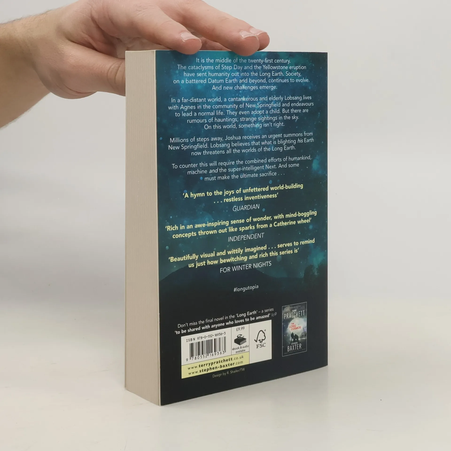 The dazzling new science fiction adventure from the extraordinary imaginations of Terry Pratchett and Stephen Baxter -- the fourth novel in a collaborative series that has been hailed as 'sense-of-wonder SF at its best' (Independent on Sunday). 2045-2059. After the cataclysmic upheavals of Step Day and the Yellowstone eruption humanity is spreading further into the Long Earth, and society, on a battered Datum Earth and beyond, continues to evolve. Now an elderly and cantankerous AI, Lobsang lives in disguise with Agnes in an exotic, far-distant world. He's convinced they're leading a normal life in New Springfield -- they even adopt a child -- but it seems they have been guided there for a reason. As rumours of strange sightings and hauntings proliferate, it becomes clear that something is very awry with this particular world. Millions of steps away, Joshua is on a personal journey of discovery: learning about the father he never knew and a secret family history. But then he receives a summons from New Springfield. Lobsang now understands the enormity of what's taking place beneath the surface of his earth -- a threat to all the worlds of the Long Earth. To counter this threat will require the combined efforts of humankind, machine and the super-intelligent Next. And some must make the ultimate sacrifice.