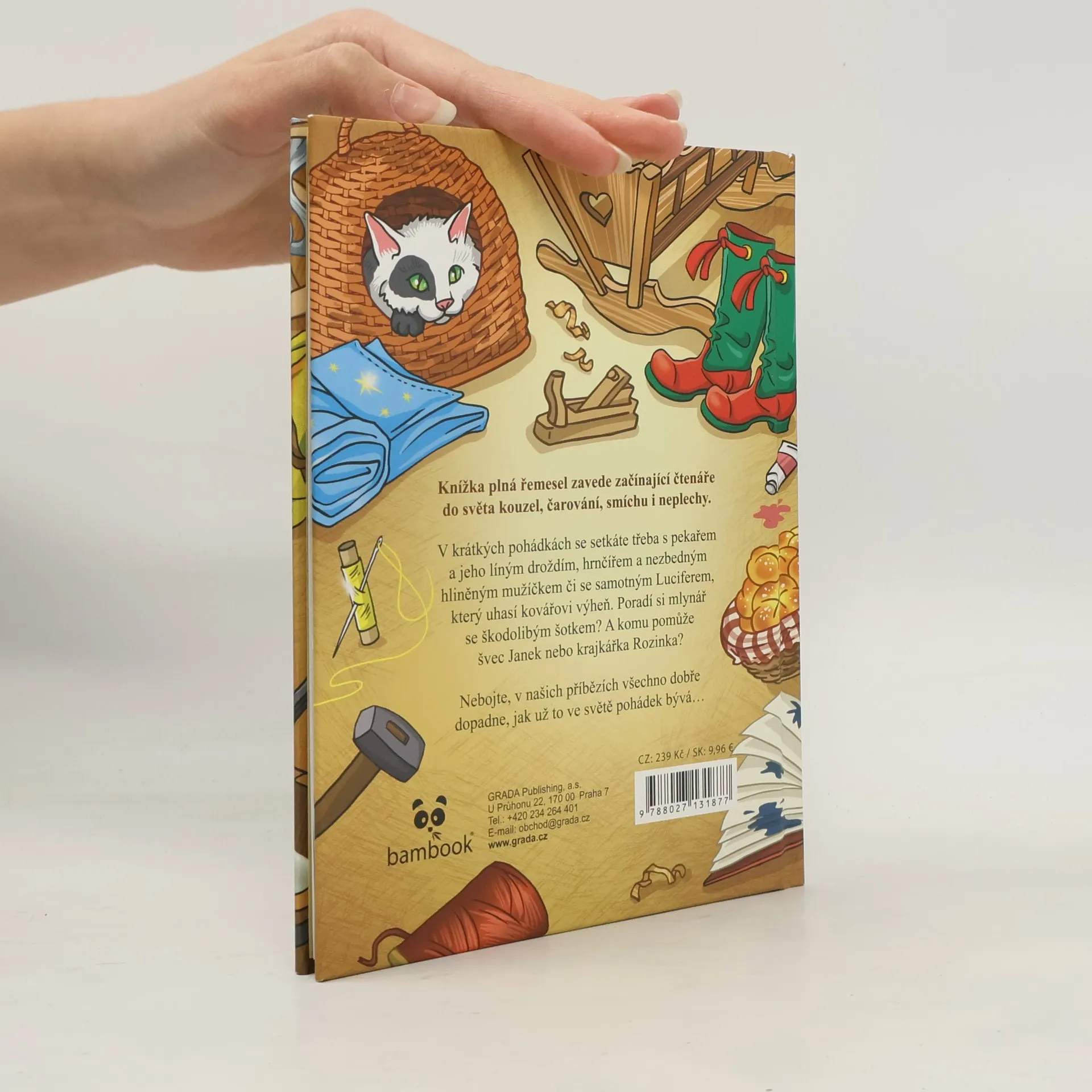 Knížka plná řemesel zavede začínající čtenáře do světa kouzel, čarování, smíchu i neplechy. V krátkých pohádkách se setkáte třeba s pekařem a jeho líným droždím, hrnčířem a nezbedným hliněným mužíčkem či se samotným Luciferem, který uhasí kovářovi výheň. Poradí si mlynář se škodolibým šotkem? A komu pomůže švec Janek nebo krajkářka Rozinka? Nebojte, v našich příbězích všechno dobře dopadne, jak už to ve světě pohádek bývá…