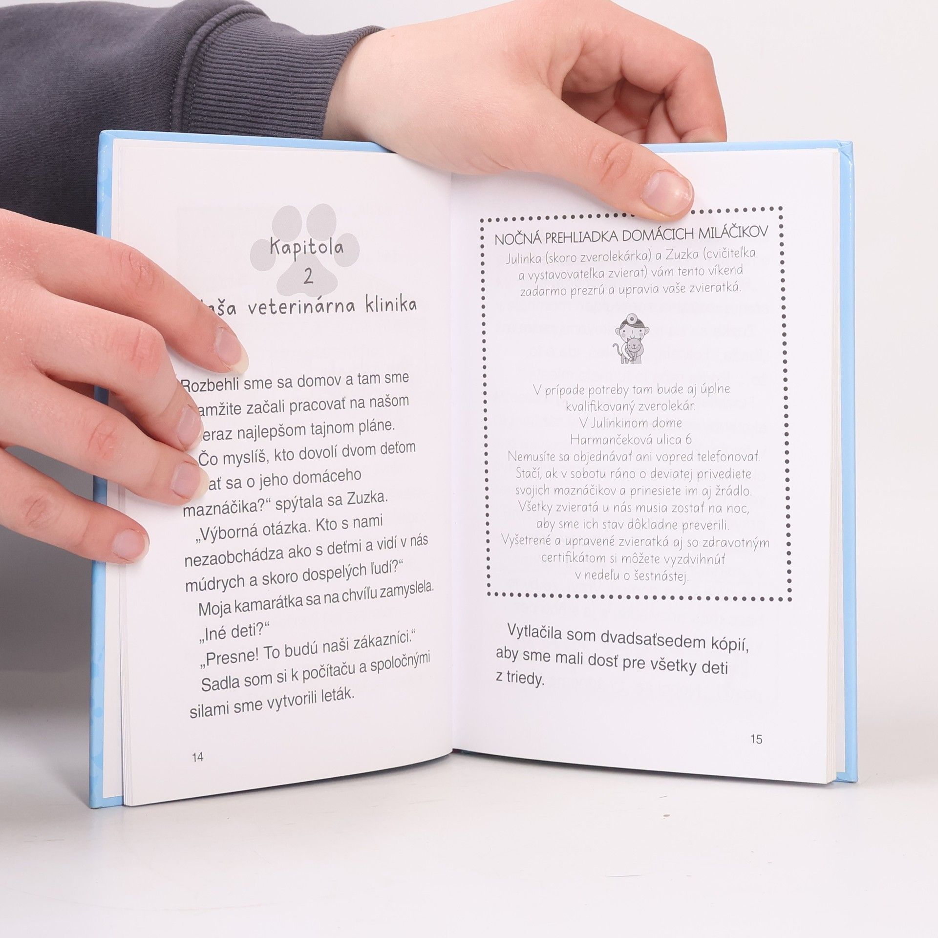 1. diel zo série: Julinka - malá zverolekárka Volám sa Julinka a až budem veľká, chcem byť zverolekárka. Starostlivosť o zvieratká preto chcem začať trénovať čo najskôr. Mám však len psa Cézara a dve morčatá. To je, bohužiaľ, dosť málo. Spolu s kamarátkou Zuzkou ale vieme, čo s tým. Máme tajný plán - otvoríme si zvierací hotel. Ale psssst, rodičia sa o tom radšej nesmú dozvedieť! Vari by tých pár zvieratiek navyše mohlo niečo vyviesť?