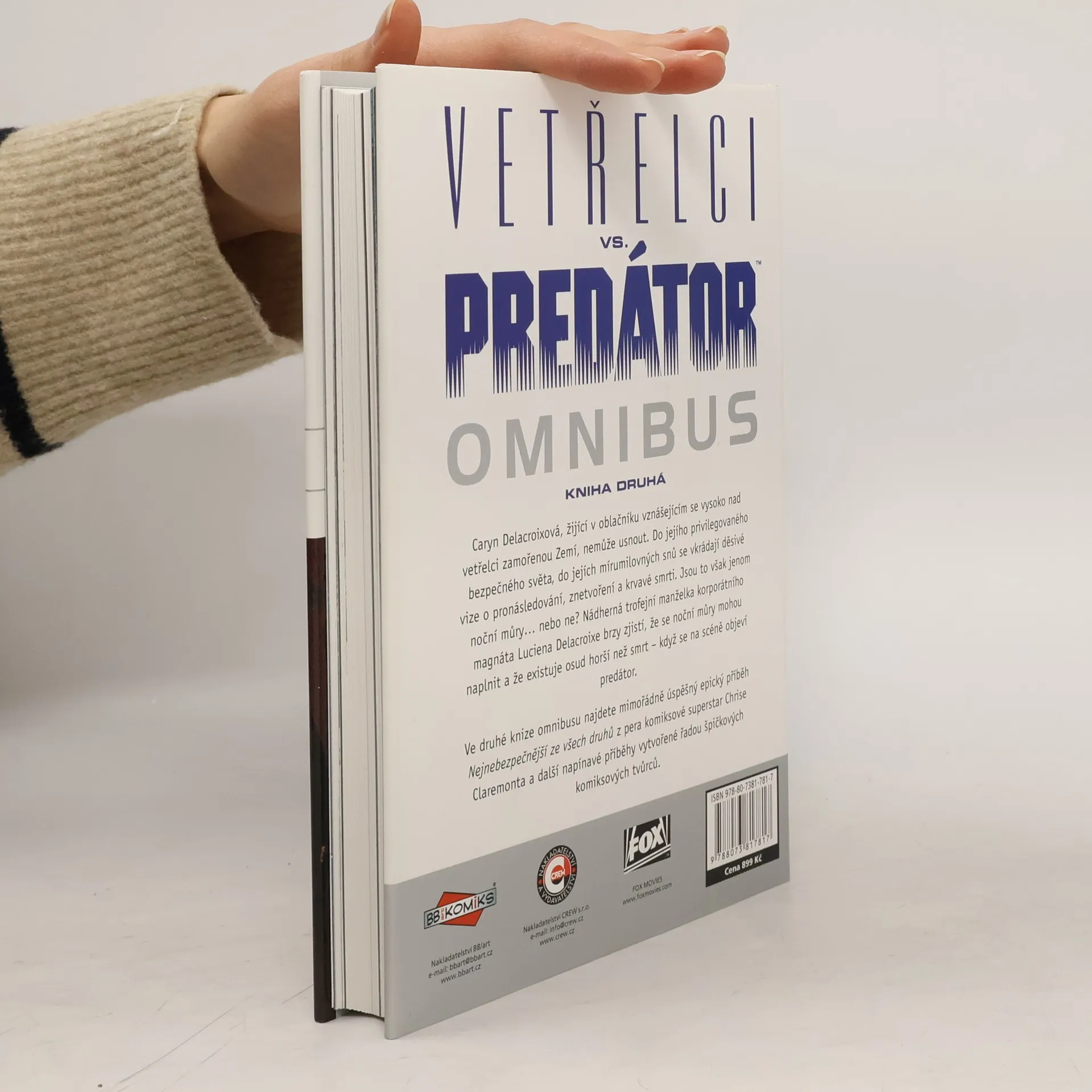 Caryn Delacroixová, žijící v oblačníku nad vetřelci zamořenou Zemí, trpí nočními můrami o pronásledování a smrti. Jako manželka korporátního magnáta Luciena Delacroixe brzy zjistí, že její sny mohou být skutečností, když se objeví predátor. Druhá kniha omnibusu obsahuje úspěšný epický příběh Nejnebezpečnější ze všech druhů od Chrise Claremonta a další napínavé příběhy od špičkových komiksových tvůrců. Válka probíhá mezi mimozemskou nákazou Vetřelci a krutými vesmírnými lovci Predátory, přičemž šance na přežití jsou nulové. Tato komiksová série, která předcházela filmům a videohrám, poprvé postavila proti sobě dvě slavná monstra a zahájila epickou ságu napříč galaxií. V rukou držíte druhou knihu z řady Vetřelci vs. Predátor, která navazuje na první omnibus. Země byla zbavena mimozemské nákazy, ale stále zůstává nebezpečná a varování před kontaminací jsou na každém rohu. Bohatí lidé žijí v luxusním oblačníku, v bezpečí… alespoň do chvíle, než sem dorazí predátor, který hledá někoho konkrétního. Následující kratší epizody z novějšího období zkoumají souboje Vetřelců a Predátorů z různých perspektiv a ukazují, že i Vetřelci mohou vyvíjet. Což není příliš dobrá zpráva.