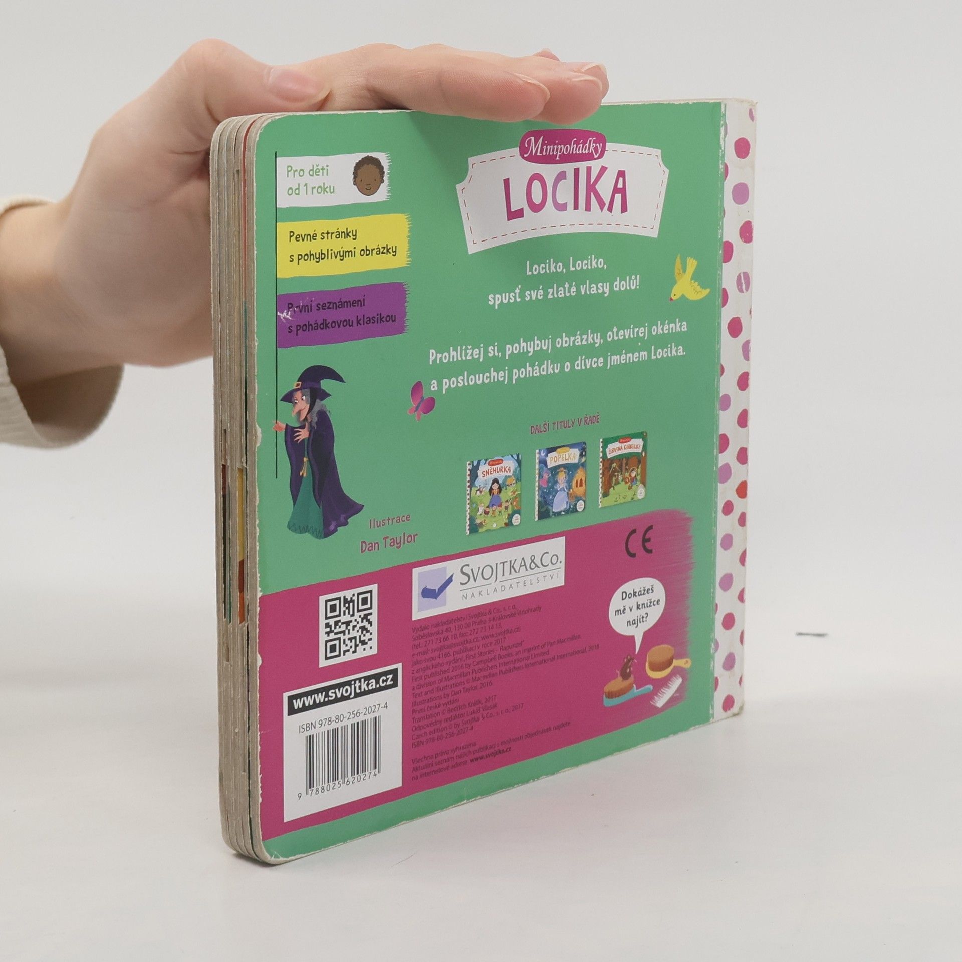 Tato veršovaná minipohádka je určena dětem od jednoho roku. Má pevné stránky s pohyblivými prvky, takže si děti mohou příběh oživit a procvičit si prsty. Toto malé dětské pohádkové leporelo s pevnými stránkami a pohyblivými obrázky je určeno dětem od jednoho roku a najdete v něm krátkou veršovanou pohádku Locika. Při jejím poslouchání si děti mohou procvičovat svou jemnou motoriku a zároveň si pohádkový příběh oživit.Tak vzhůru do čtení! Minipohádka Locika už na vás čeká!