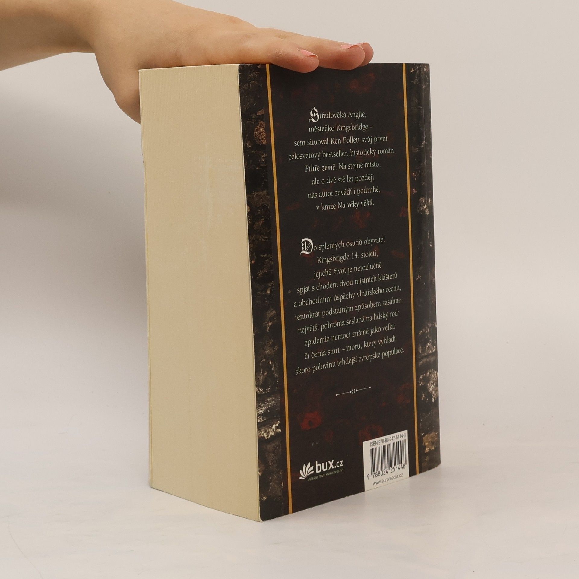 Středověká Anglie, městečko Kingsbridge – sem situoval Ken Follett svůj první celosvětový bestseller, historický román Pilíře země. Na stejné místo, ale o dvě stě let později, nás autor zavádí i podruhé v knize Na věky věků. Do spletitých osudů obyvatel Kingsbrigde 14. století, jejichž život je nerozlučně spjat s chodem dvou místních klášterů a obchodními úspěchy vlnařského cechu, tentokrát podstatným způsobem zasáhne největší pohroma seslaná na lidský rod: epidemie nemoci známé jako velká či černá smrt, moru, který vyhladí skoro polovinu tehdejší evropské populace. Rozsáhlá sága Na věky věků se v roce 2008 stala nejprodávanějším titulem na světě – dosud se jí prodalo více než 11 milionů výtisků, také ona se stejně jako Pilíře země dočkala seriálové podoby, a sice roku 2012 opět v produkci Ridleyho Scotta.
