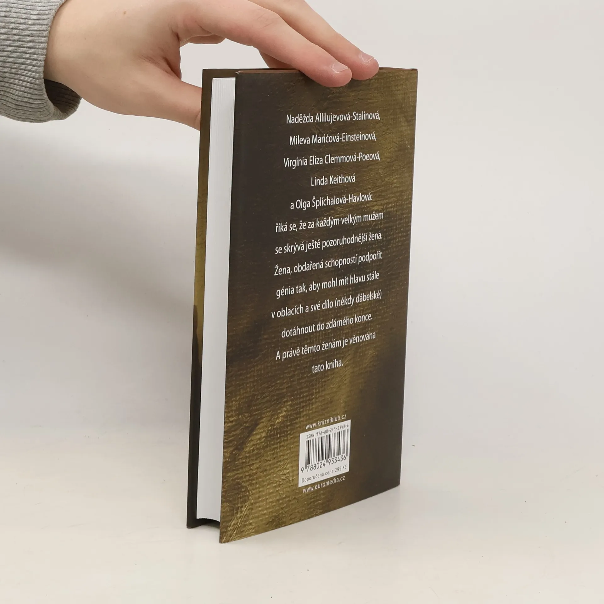 Naděžda Allilujevová-Stalinová, Mileva Marićová-Einsteinová, Virginia Eliza Clemmová-Poeová, Linda Keithová a Olga Šplíchalová-Havlová: říká se, že za každým velkým mužem se skrývá ještě větší žena. Žena, obdařená stejně výrazným talentem jako její partner – byť jde jen o nadání věřit a zbožňovat. Při bližším pohledu zjistíme, že právě tato vlastnost, tato unikátní schopnost podpírat génia tak, aby mohl mít hlavu stále v oblacích a své dílo (někdy ďábelské) dotáhnout do zdárného konce, je rozhodující. A právě těmto ženám je věnována tato kniha.