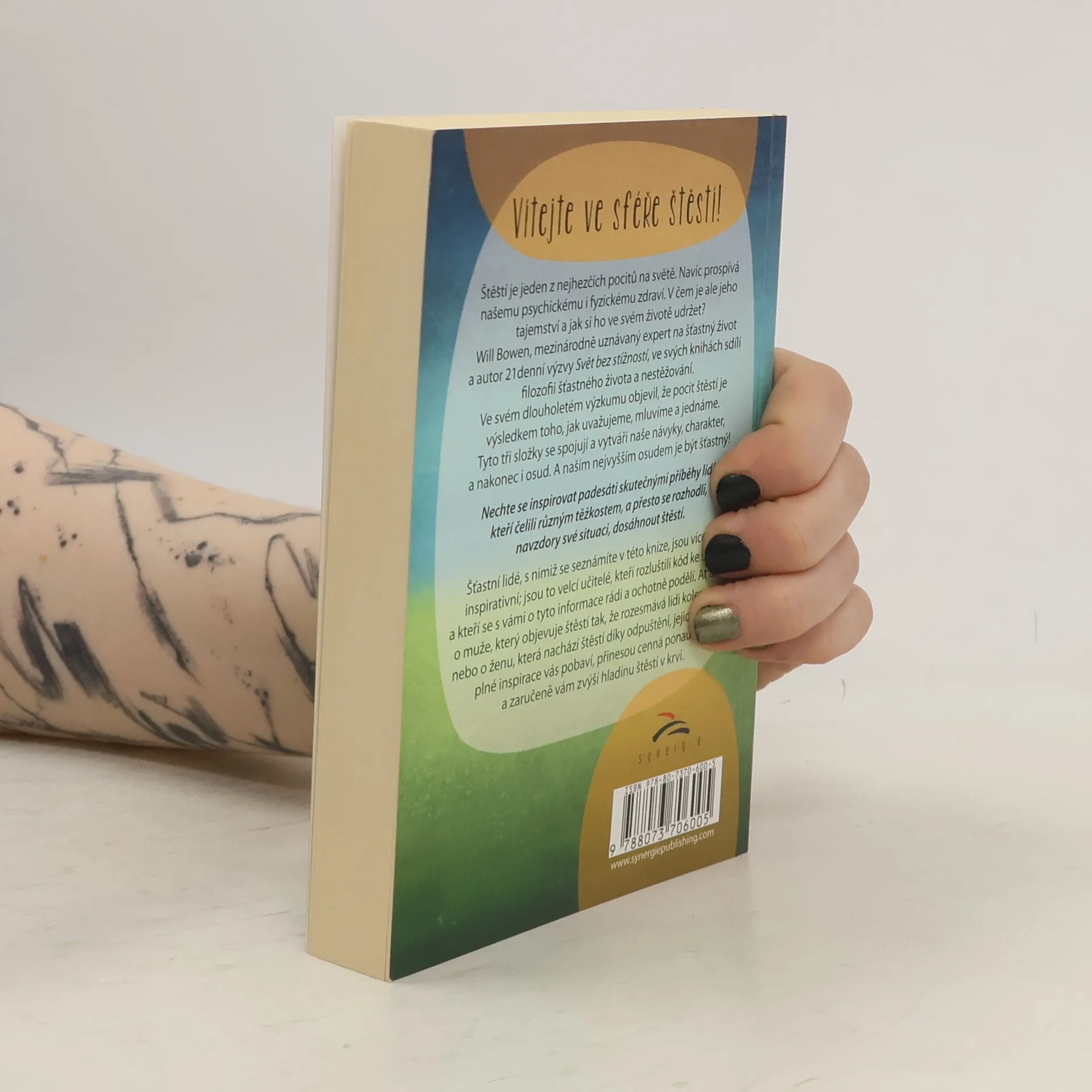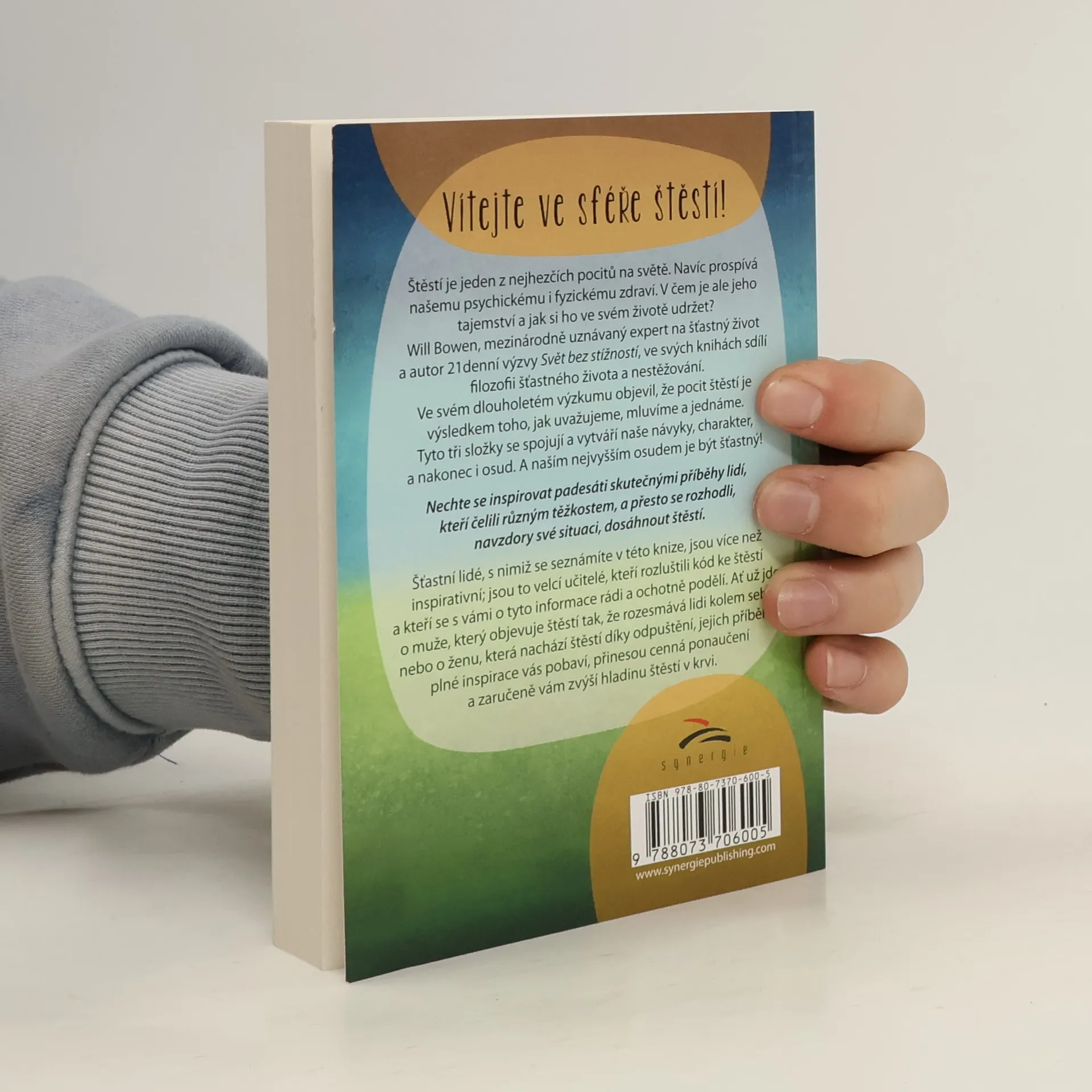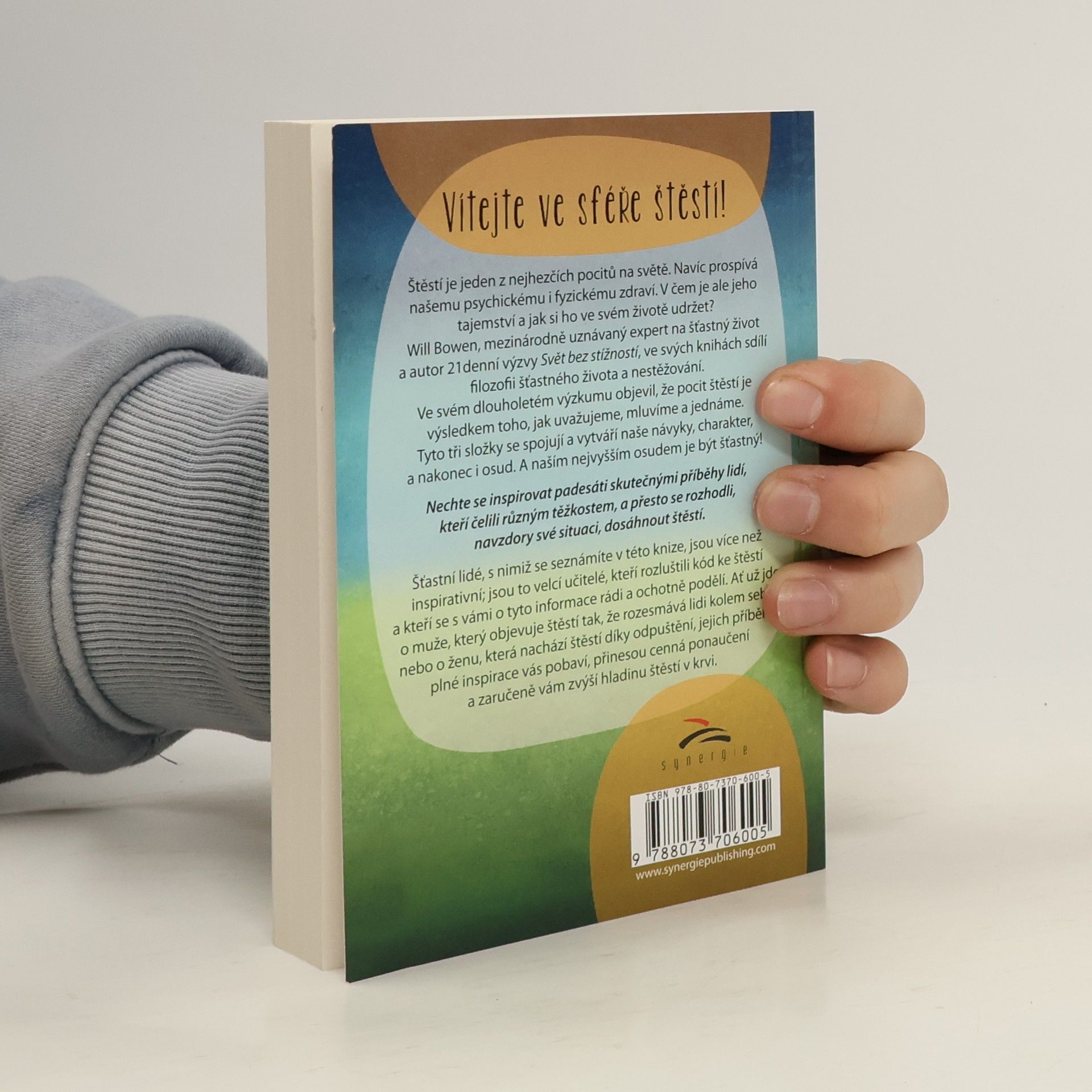 Inspirující příběhy, které zvýší hladinu vašeho štěstí Vítejte ve sféře štěstí! Štěstí je jeden z nejhezčích pocitů na světě. Navíc prospívá našemu psychickému i fyzickému zdraví. V čem je ale jeho tajemství a jak si ho ve svém životě udržet? Will Bowen, mezinárodně uznávaný expert na šťastný život a autor 21denní výzvy Svět bez stížností, ve svých knihách sdílí filozofii šťastného života a nestěžování. Ve svém dlouholetém výzkumu objevil, že pocit štěstí je výsledkem toho, jak uvažujeme, mluvíme a jednáme. Tyto tři složky se spojují a vytváří naše návyky, charakter, a nakonec i osud. A naším nejvyšším osudem je být šťastný! Nechte se inspirovat padesáti skutečnými příběhy lidí, kteří čelili různým těžkostem, a přesto se rozhodli, navzdory své situaci, dosáhnout štěstí. Šťastní lidé, s nimiž se seznámíte v této knize, jsou více než inspirativní; jsou to velcí učitelé, kteří rozluštili kód ke štěstí a kteří se s vámi o tyto informace rádi a ochotně podělí. Ať už jde o muže, který objevuje štěstí tak, že rozesmává lidi kolem sebe, nebo o ženu, která nachází štěstí díky odpuštění, jejich příběhy plné inspirace vás pobaví, přinesou cenná ponaučení a zaručeně vám zvýší hladinu štěstí v krvi.