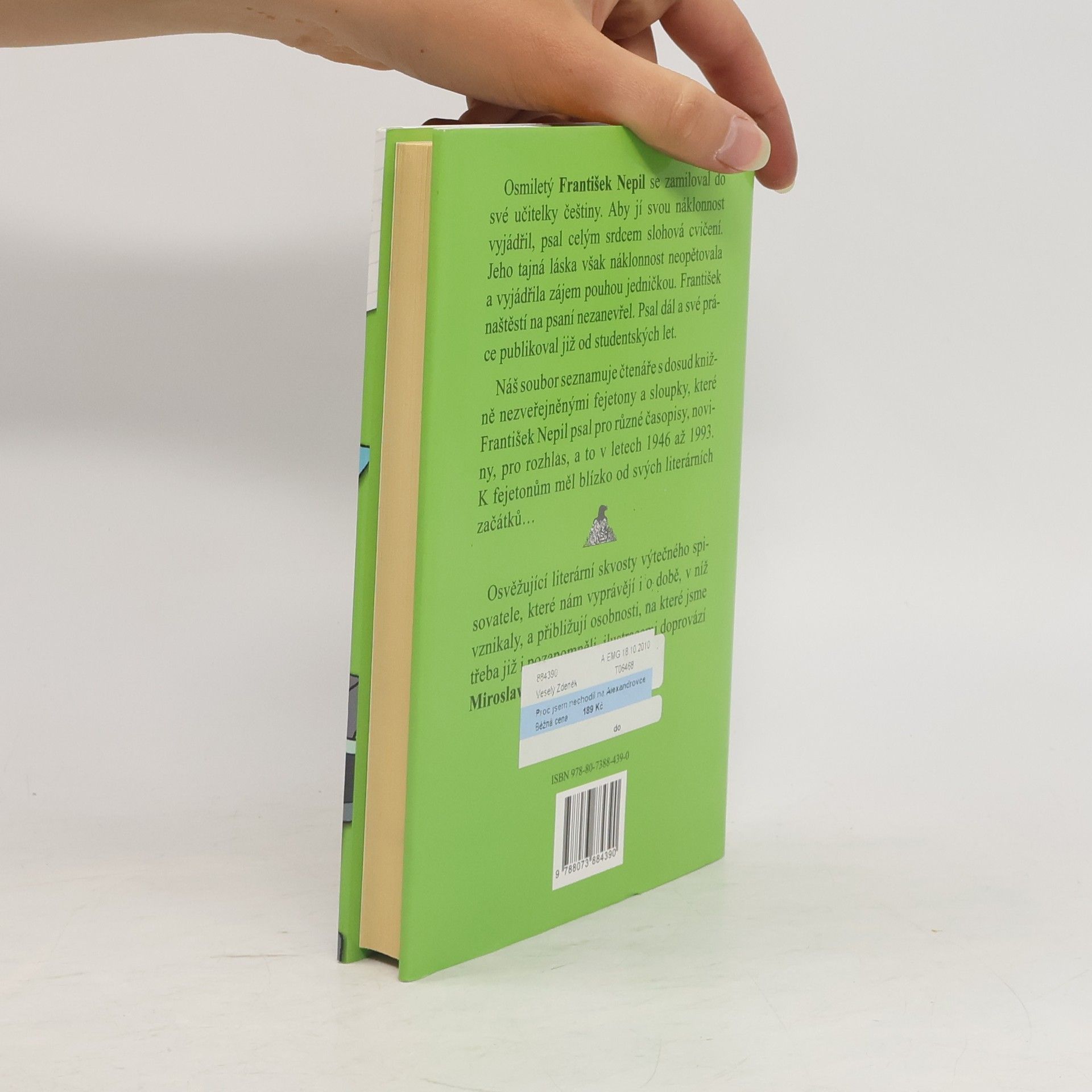 smiletý František Nepil se zamiloval do své učitelky češtiny. Aby jí svou náklonnost vyjádřil, psal celým srdcem slohová cvičení. Jeho tajná láska však náklonnost neopětovala a vyjádřila zájem pouhou jedničkou z češtiny. František naštěstí na psaní nezanevřel. Psal dál a své práce publikoval již od studentských let. Náš soubor seznamuje čtenáře s dosud knižně nezveřejněnými fejetony a sloupky, které František Nepil psal pro různé časopisy, noviny, pro rozhlas, a to v letech 1946 až 1993. K fejetonům měl blízko od svých literárních začátků… Osvěžující literární skvosty výtečného spisovatele, které nám vyprávějí i o době, v níž vznikaly, a přibližují osobnosti, na které jsme třeba již i pozapomněli.