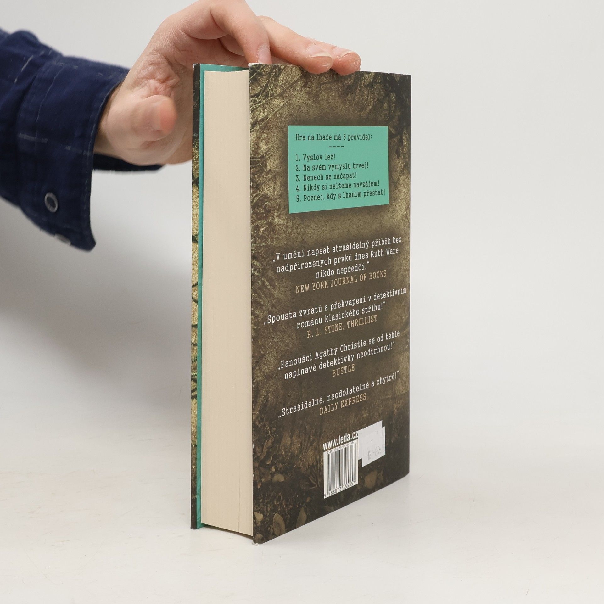 HRA NA LHÁŘE MÁ JEDNODUCHÁ PRAVIDLA: 1. VYSLOV LEŽ! 2. NA SVÉM VÝMYSLU TRVEJ! 3. NENECH SE NAČAPAT! V chladném červnovém ránu se na anglickém pobřeží prochází kdosi z místních lidí se psem. Zvíře vyhrabe věc, kterou jeho paní zpočátku považuje za trouchnivou větev, po chvíli ale zjistí, že se jedná o cosi podstatně zlověstnějšího. Hned nazítří dostanou tři mladé ženy žijící v Londýně – Fatima, Thea a Isa – textovku, kde stojí pouze dvě slova: „Potřebuju tě!“ Isa a její kamarádky kdysi v internátní škole hrávaly takzvanou hru na lháře: vykládaly smyšlené historky spolužačkám, učitelkám a vlastně kdekomu. Jenomže jejich poťouchlá zábava se neobešla bez následků, a tak dívky vyloučili ze školy. Po téměř dvou desetiletích je volá zpět Kate, poslední ze čtveřice nerozlučných přítelkyň. Nebude to ale sentimentální setkání po letech. Roky bájného lhaní si vyžádaly svou daň a teď je třeba uvést věci na pravou míru – hra na lháře má totiž ještě tahle dvě pravidla: 4. NIKDY SI NELŽEME NAVZÁJEM! 5. POZNEJ, KDY S LHANÍM PŘESTAT! „V umění napsat strašidelný příběh bez nadpřirozených prvků dnes Ruth Ware nikdo nepředčí.“ - NEW YORK JOURNAL OF BOOKS „Spousta zvratů a překvapení v detektivním románu klasického střihu!“ - R. L. STINE, THRILLIST „Fanoušci Agathy Christie se od téhle napínavé detektivky neodtrhnou!“ - BUSTLE „Strašidelné, neodolatelné a chytré!“ - DAILY EXPRESS