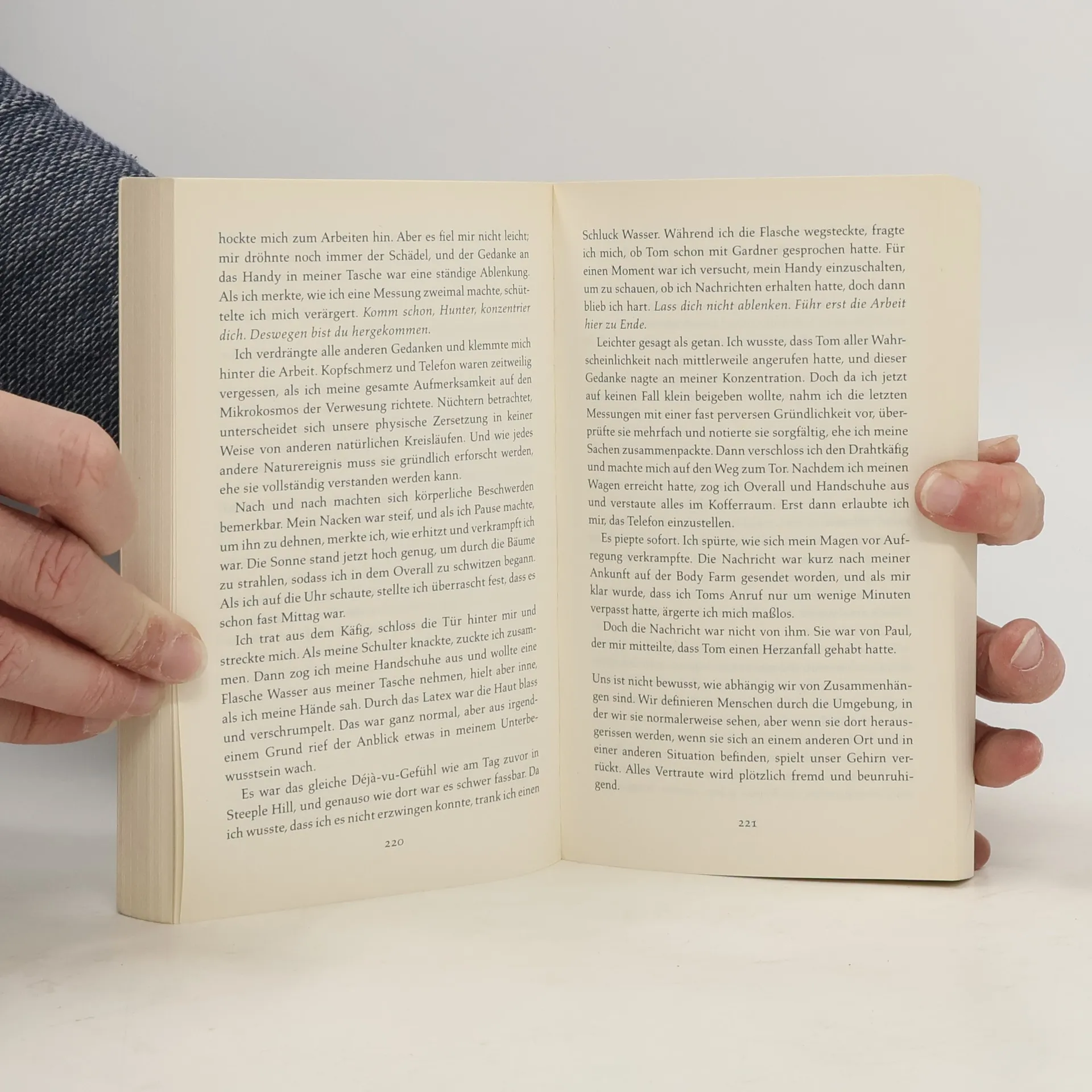 Bei seinem letzten Einsatz ist der Forensiker David Hunter nur knapp dem Tode entronnen. Von einer vollständigen Genesung weit entfernt, quält ihn die Frage, ob er seinem Beruf noch gewachsen ist. Hunter sagt alle neuen Aufträge ab und kommt dennoch nicht zur Ruhe. Er beschließt daher, die Body Farm in Tennessee aufzusuchen – eine bekannte Akademie, an der er sein Handwerk erlernte. Dort trifft Hunter einen alten Freund, den er bei den Ermittlungen im Fall eines sadistischen Mordes unterstützen soll. Das Opfer wurde gefoltert, die Leiche ist bis zur Unkenntlichkeit zersetzt – weit mehr, als es unter diesen Umständen der Fall sein dürfte. Am Tatort finden sich Fingerabdrücke, mit deren Hilfe der Täter identifiziert werden kann. Doch schon bald stellt sich heraus, dass nichts so ist, wie es auf den ersten Blick zu sein scheint. Und dass David Hunter im Begriff ist, einen folgenschweren Fehler zu begehen…