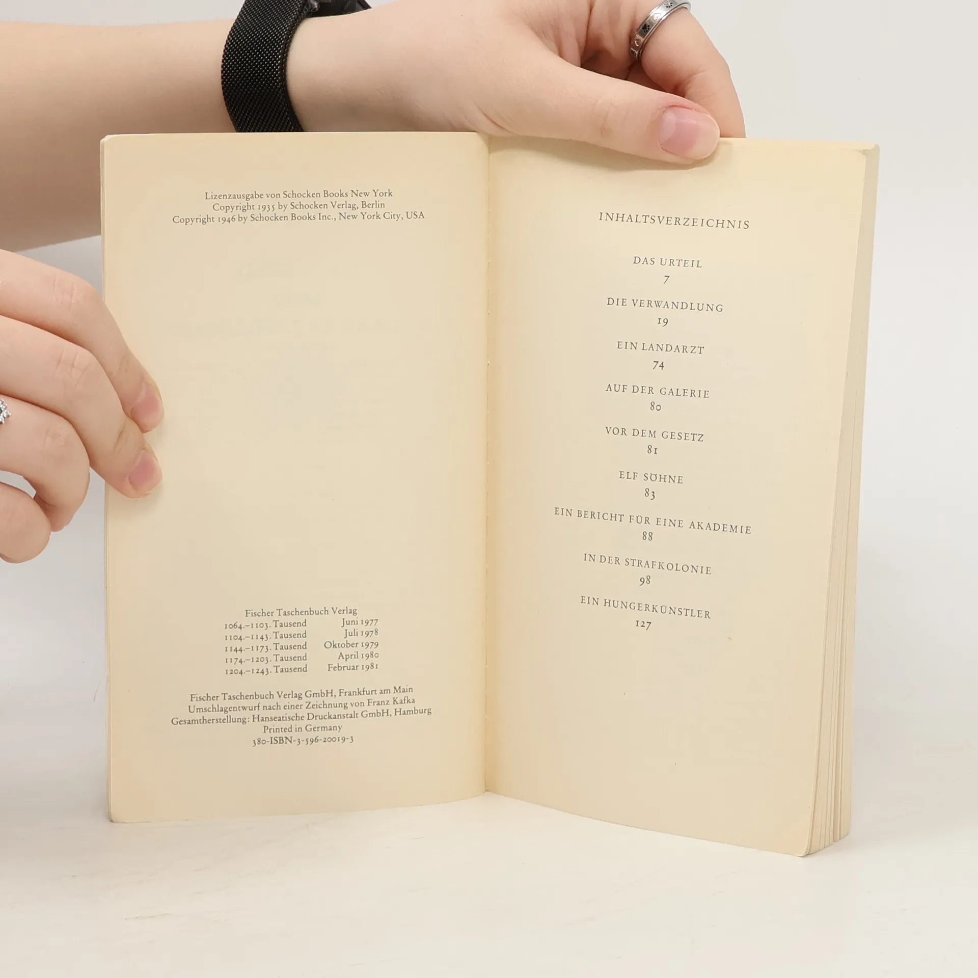 Der Band enthält Kafkas wichtigste kürzere Prosatexte aus der Zeit bis 1914: Gespräch mit dem Beter, Gespräch mit dem Betrunkenen, Großer Lärm, die Sammlung Betrachtung sowie die großen Erzählungen Das Urteil und In der Strafkolonie.
