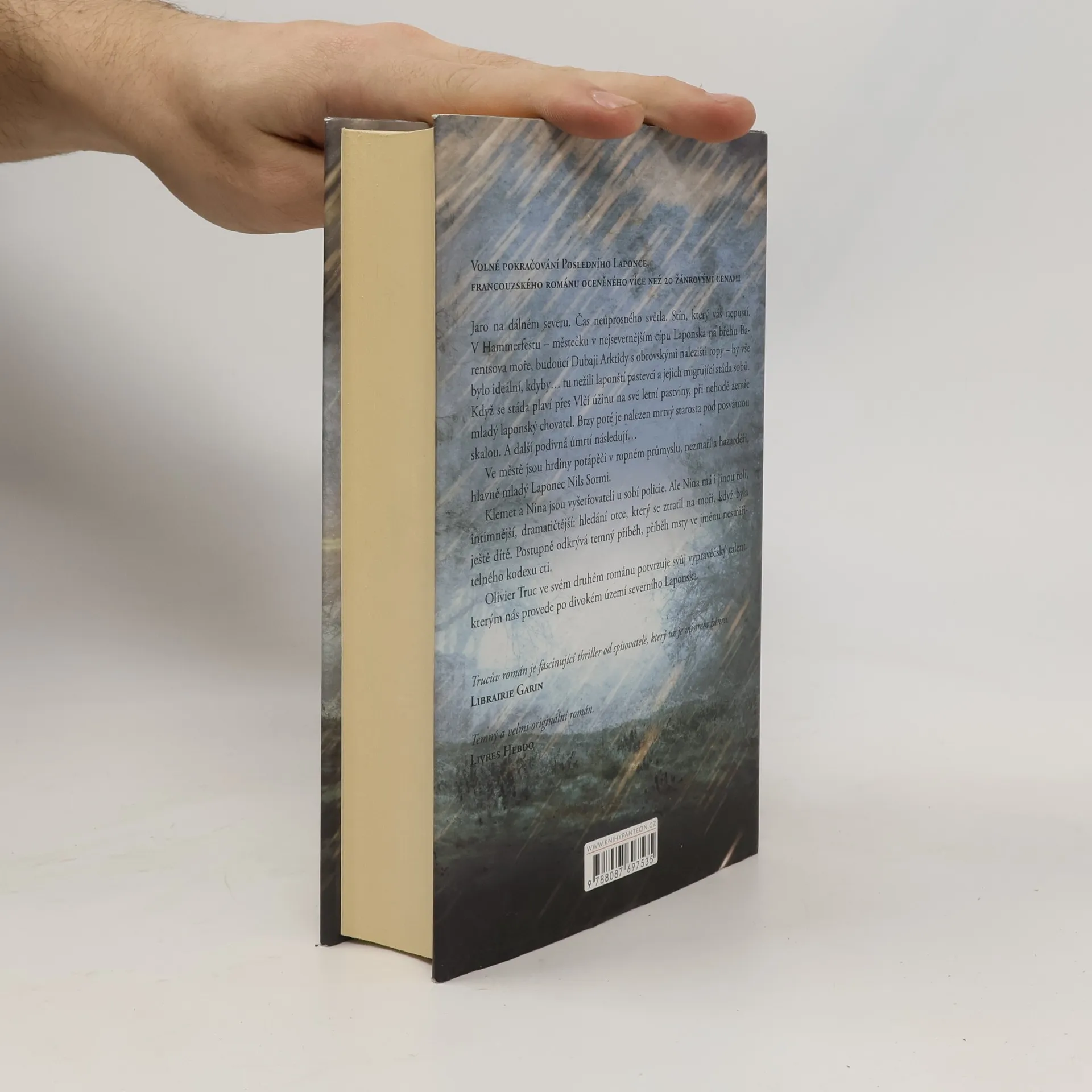 Volné pokračování POSLEDNÍHO LAPONCE, francouzského románu oceněného více než 20 žánrovými cenami. Jaro na dálném severu. Čas neúprosného světla. Stín, který vás nepustí. V Hammerfestu – městečku v nejsevernějším cípu Laponska na břehu Barentsova moře, budoucí Dubaji Arktidy s obrovskými nalezišti ropy – by vše bylo ideální, kdyby… tu nežili laponští pastevci a jejich migrující stáda sobů. Když stáda plavou přes Vlčí průliv na své letní pastviny, při nehodě zemře mladý laponský chovatel. Brzy poté je nalezen mrtvý starosta pod posvátnou skalou. A další podivná úmrtí pokračují… Ve městě jsou hrdiny potápěči v ropném průmyslu, nezmaři a hazardéři, hlavně mladý Laponec Nils Sormi. Klemet a Nina jsou vyšetřovateli u sobí policie. Ale Nina má jinou roli, intimnější, dramatičtější: hledání otce, který se ztratil na moři, když byla ještě dítě. Odhalí temný příběh spřádaný pomstou na pozadí nesmiřitelného kodexu cti. Olivier Truc ve svém druhém románu potvrzuje svůj vypravěčský talent, kterým nás provede po divokém území severního Laponska.