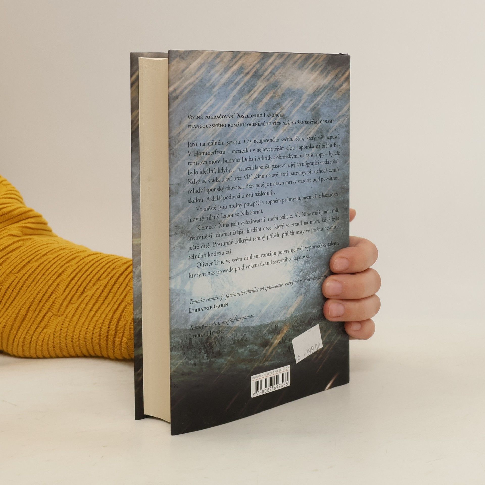 Volné pokračování POSLEDNÍHO LAPONCE, francouzského románu oceněného více než 20 žánrovými cenami. Jaro na dálném severu. Čas neúprosného světla. Stín, který vás nepustí. V Hammerfestu – městečku v nejsevernějším cípu Laponska na břehu Barentsova moře, budoucí Dubaji Arktidy s obrovskými nalezišti ropy – by vše bylo ideální, kdyby… tu nežili laponští pastevci a jejich migrující stáda sobů. Když stáda plavou přes Vlčí průliv na své letní pastviny, při nehodě zemře mladý laponský chovatel. Brzy poté je nalezen mrtvý starosta pod posvátnou skalou. A další podivná úmrtí pokračují… Ve městě jsou hrdiny potápěči v ropném průmyslu, nezmaři a hazardéři, hlavně mladý Laponec Nils Sormi. Klemet a Nina jsou vyšetřovateli u sobí policie. Ale Nina má jinou roli, intimnější, dramatičtější: hledání otce, který se ztratil na moři, když byla ještě dítě. Odhalí temný příběh spřádaný pomstou na pozadí nesmiřitelného kodexu cti. Olivier Truc ve svém druhém románu potvrzuje svůj vypravěčský talent, kterým nás provede po divokém území severního Laponska.