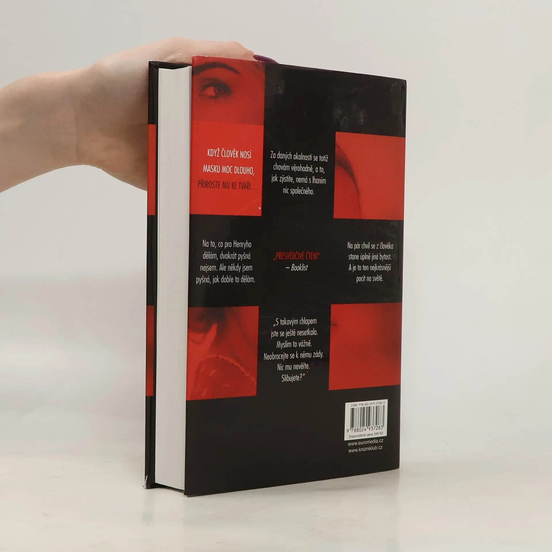 Když člověk nosí masku moc dlouho, přiroste mu ke tváři… Temný psychologický thriller od autora loňského bestselleru Ta přede mnou! Mladá ctižádostivá herečka Claire zoufale potřebuje práci a peníze, proto se rozhodne přijmout nabídku stejně tak amorální jako nebezpečnou – má být jakousi volavkou právnické firmy specializující se na rozvodové pře. Jejím úkolem je svést ženatého muže, vše zdokumentovat a důkazy posléze předat „podvedené“ manželce, aby je mohla použít u soudu. Jenomže potom je žena jednoho z jejích cílů nalezena mrtvá a Claire se stává hlavní podezřelou. O pár měsíců později je však stejnými vyšetřovateli naopak požádána o pomoc. Policie chce, aby se vetřela do života manžela zavražděné – tedy jediného muže, jehož se jí svést nepodařilo. Se svou rolí se však sžije až příliš dokonale…