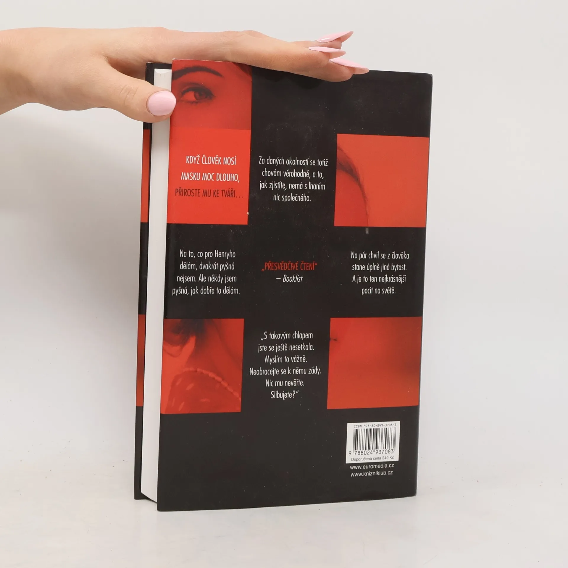 Když člověk nosí masku moc dlouho, přiroste mu ke tváři… Temný psychologický thriller od autora loňského bestselleru Ta přede mnou! Mladá ctižádostivá herečka Claire zoufale potřebuje práci a peníze, proto se rozhodne přijmout nabídku stejně tak amorální jako nebezpečnou – má být jakousi volavkou právnické firmy specializující se na rozvodové pře. Jejím úkolem je svést ženatého muže, vše zdokumentovat a důkazy posléze předat „podvedené“ manželce, aby je mohla použít u soudu. Jenomže potom je žena jednoho z jejích cílů nalezena mrtvá a Claire se stává hlavní podezřelou. O pár měsíců později je však stejnými vyšetřovateli naopak požádána o pomoc. Policie chce, aby se vetřela do života manžela zavražděné – tedy jediného muže, jehož se jí svést nepodařilo. Se svou rolí se však sžije až příliš dokonale…