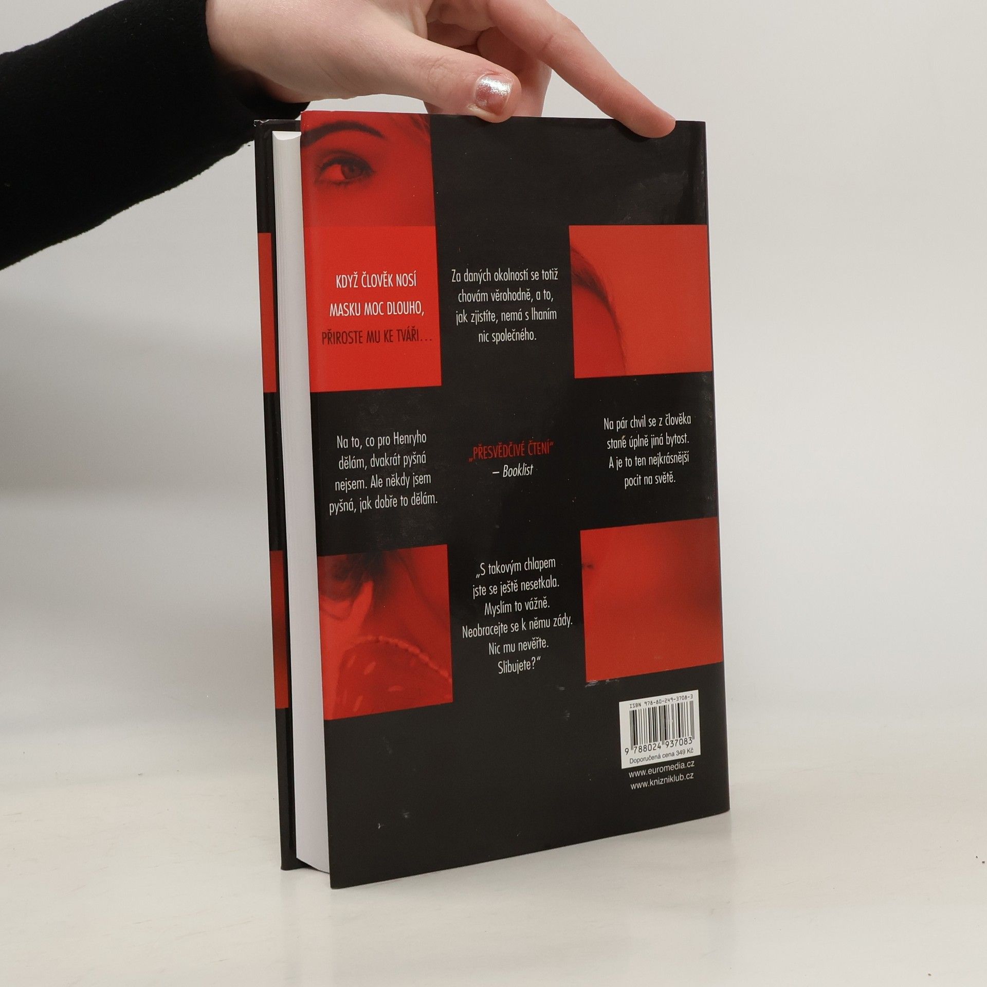 Když člověk nosí masku moc dlouho, přiroste mu ke tváři… Temný psychologický thriller od autora loňského bestselleru Ta přede mnou! Mladá ctižádostivá herečka Claire zoufale potřebuje práci a peníze, proto se rozhodne přijmout nabídku stejně tak amorální jako nebezpečnou – má být jakousi volavkou právnické firmy specializující se na rozvodové pře. Jejím úkolem je svést ženatého muže, vše zdokumentovat a důkazy posléze předat „podvedené“ manželce, aby je mohla použít u soudu. Jenomže potom je žena jednoho z jejích cílů nalezena mrtvá a Claire se stává hlavní podezřelou. O pár měsíců později je však stejnými vyšetřovateli naopak požádána o pomoc. Policie chce, aby se vetřela do života manžela zavražděné – tedy jediného muže, jehož se jí svést nepodařilo. Se svou rolí se však sžije až příliš dokonale…