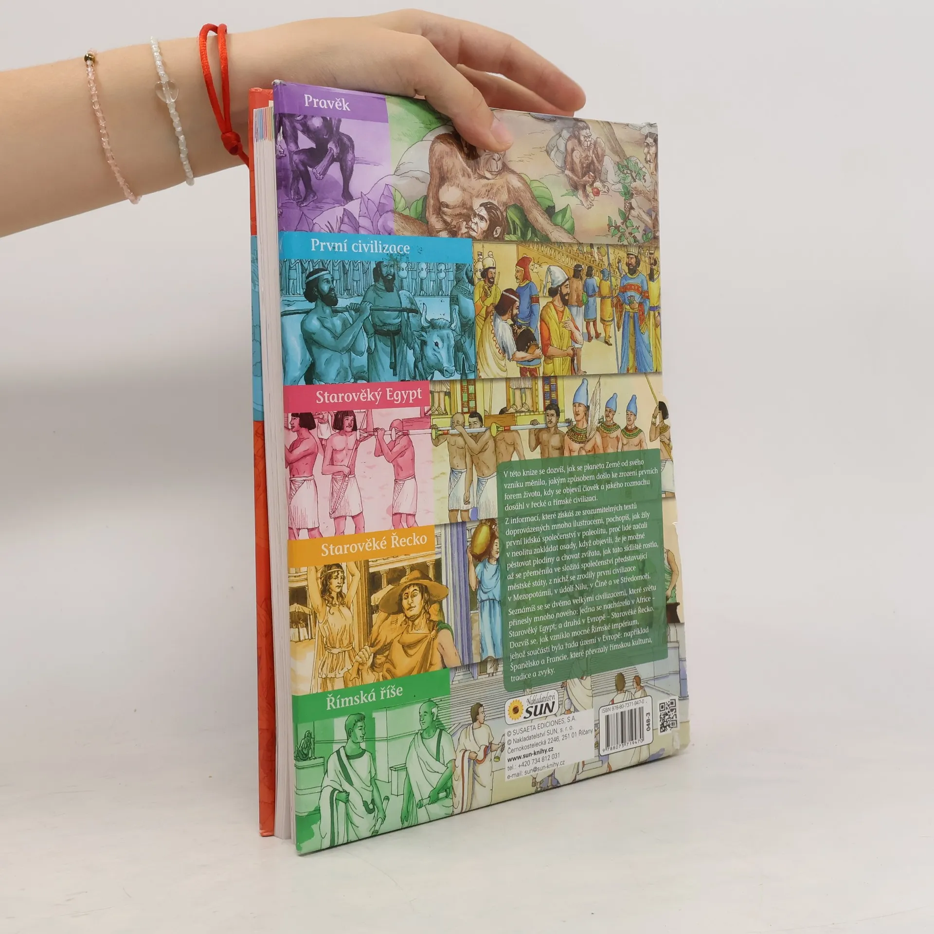 V této knize se dozvíš, jak žila první lidská společenství v paleolitu, proč začali lidé v neolitu zakládat osady a jak začaly vznikat městské státy, z nichž se později vyvinuly první civilizace. Poznáš také historii starověkého Egypta, Řecka a Říma.