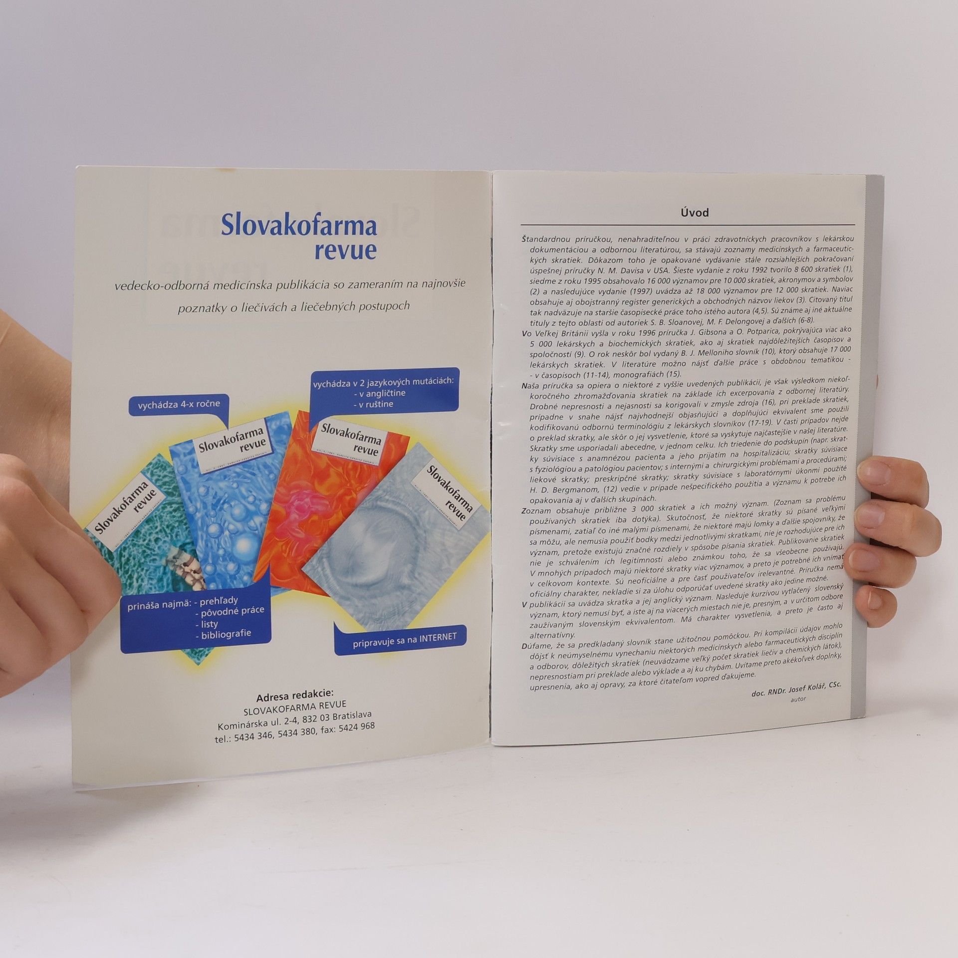 Slovník najpoužívanejších anglických skratiek v medicíne a vo farmácii, Jozef Kolář