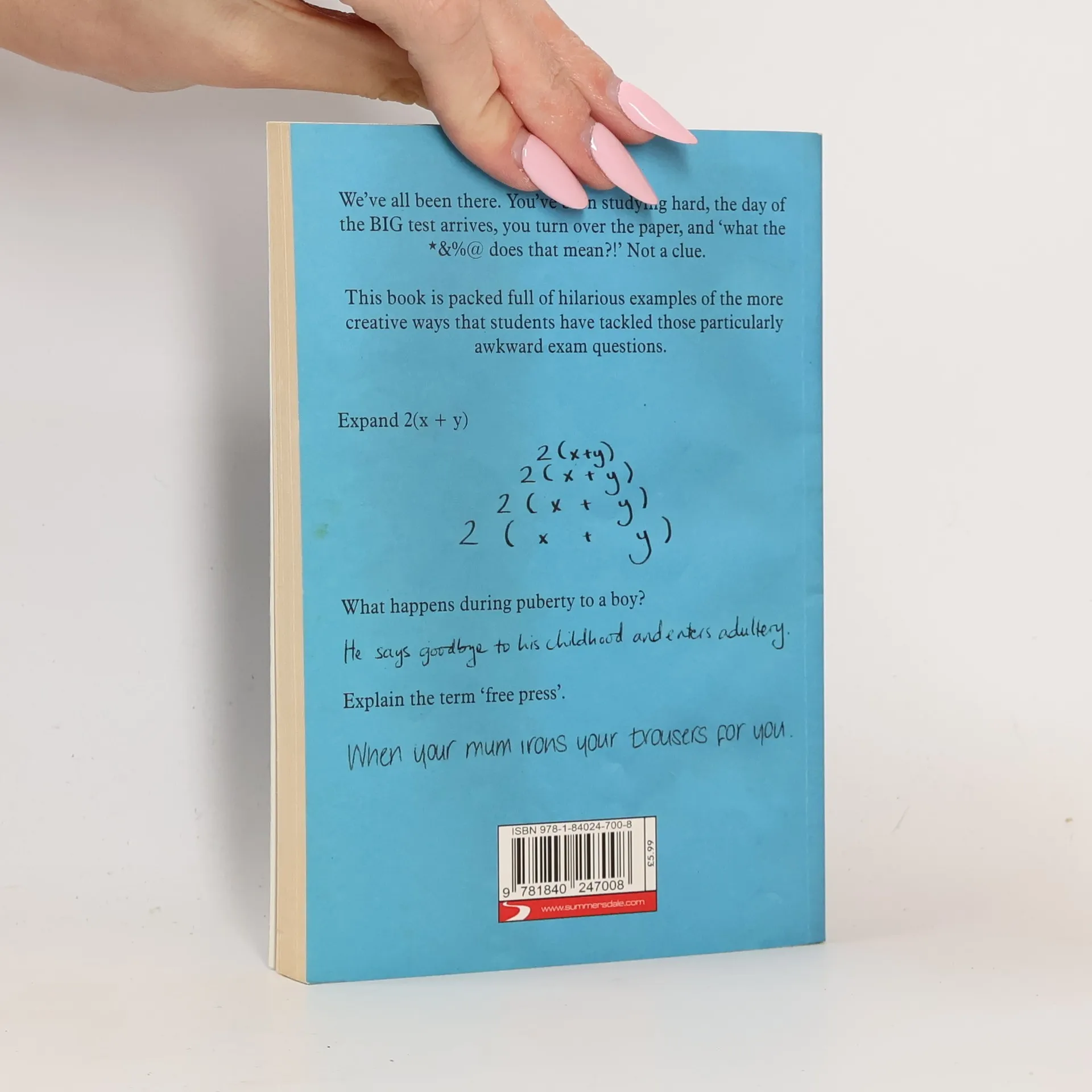F stands for "funny" in this perfect gift for students or anyone who has ever had to struggle through a test and needs a good laugh. Celebrating the creative side of failure in a way we can all relate to, F in Exams gathers the most hilarious and inventive test answers provided by students who, faced with a question they have no hope of getting right, decide to have a little fun instead. Whether in science (Q: What is the highest frequency noise that a human can register? A: Mariah Carey), the humanities (Q: What did Mahatma Gandhi and Genghis Khan have in common? A: Unusual names), math, or other subjects, these 250 entries prove that while everyone enjoys the spectacle of failure, it's even sweeter to see a FAIL turn into a WIN.