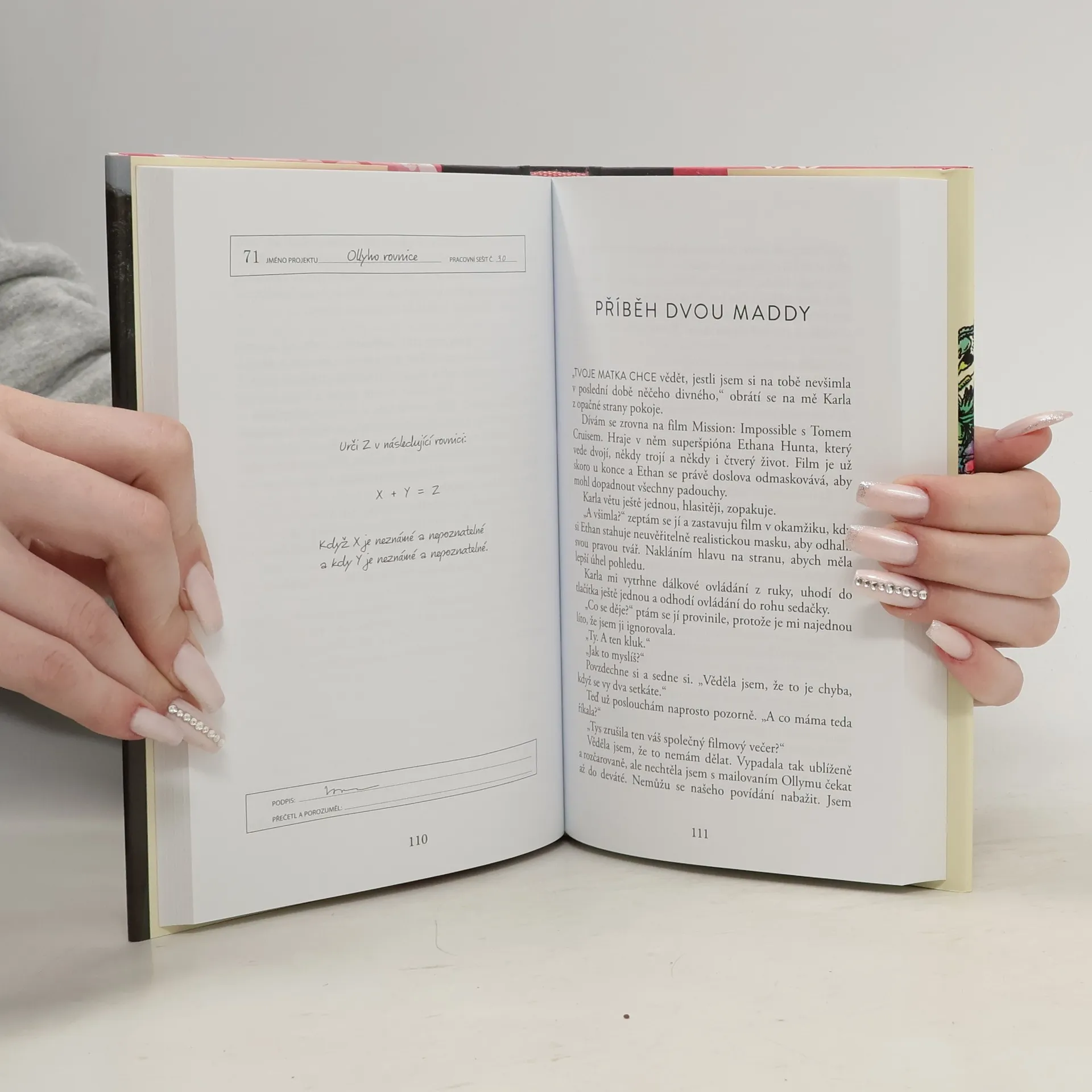 Tato originální prvotina vypráví o dívce, která je doslova a do písmene alergická na celý svět. Je zavřená doma, nikam nesmí a skoro nikdo nesmí k ní. Když se ale do sousedního domu přistěhuje nová rodina a s ní i kluk jménem Olly, začíná se odvíjet komplikovaná „lovestory“, která obrátí naruby všechno, úplně všechno, co osmnáctiletá Madeline dosud znala. Neotřelý milostný příběh je zajímavý i svým zpracováním – obsahuje Madelininy deníkové záznamy, poznámky, tabulky, seznamy či ilustrace. Ahoj. Jmenuji se Madeline Whittierová a jsem nemocná. Moje nemoc je vzácná a málo známá. Jsem totiž alergická na celý svět. Vůbec nevycházím z domu, nebyla jsem venku celých sedmnáct let. Jediní lidé, které vídám, jsou moje máma a ošetřovatelka Carla. Ale pak se jednoho dne u vedlejšího domu objevilo stěhovací auto. Vykoukla jsem z okna a uviděla ho. Byl vysoký, štíhlý a celý v černém – černé triko, černé džíny, černé tenisky a černá pletená čepice, která mu zakrývala vlasy. Zachytil můj pohled a upřeně se na mě zadíval. Já jeho upřený pohled opětovala. Jmenuje se Olly. Možná že nemůžeme předvídat budoucnost, ale některé věci přesto předpovědět můžeme. Například to, že se do Ollyho zamiluju, je jisté. A téměř jisté taky je, že to bude katastrofa. Příběh o bezmezné radosti i nekonečném smutku, které zažíváme, když prorazíme stěny své ulity a kvůli lásce uděláme něco úplně bláznivého (a smrtelně nebezpečného). (Dotisk 2017 s novou obálkou)