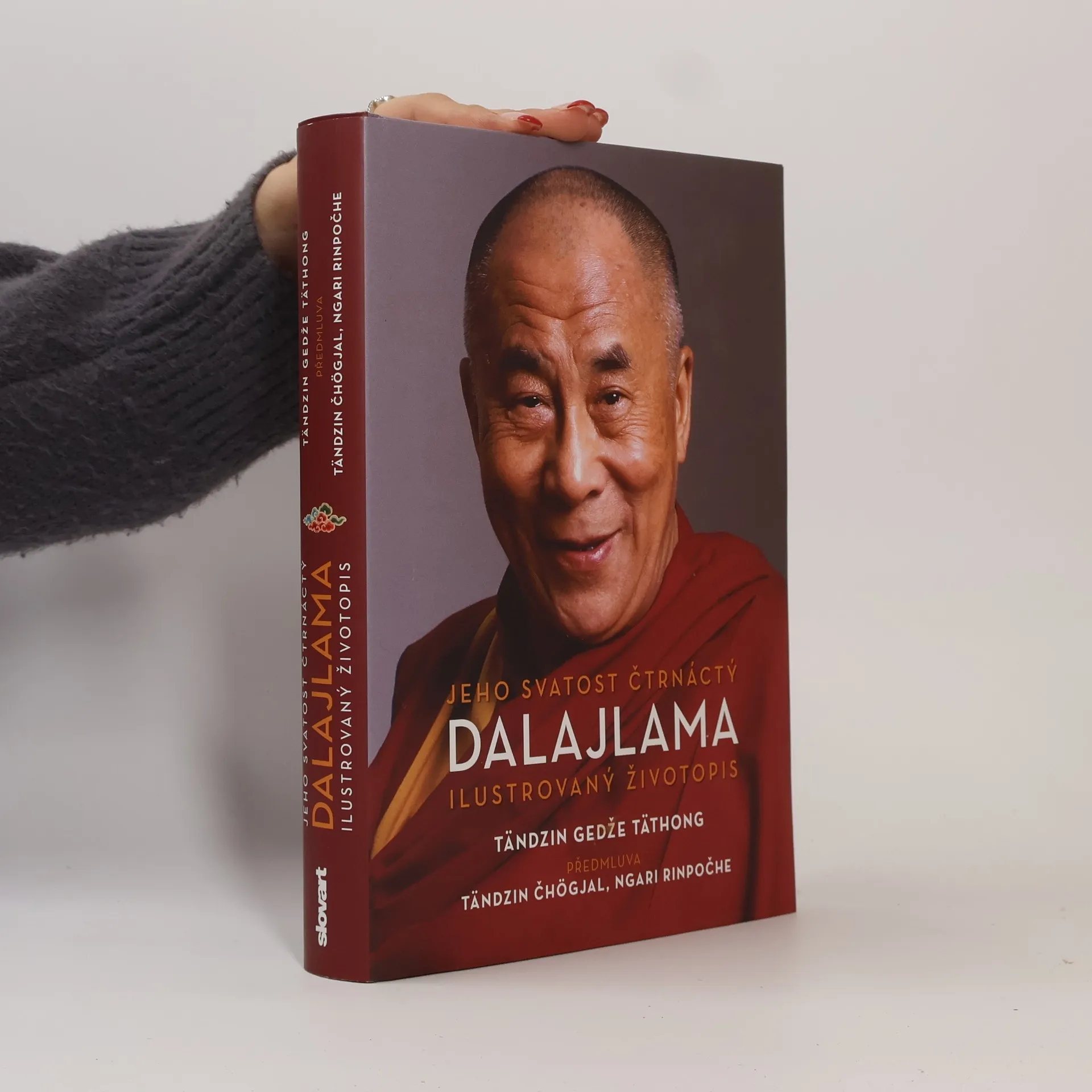 Ilustrovaný životopis Jeho Svatosti čtrnáctého dalajlamy je dílem autora, který se s tibetským duchovním vůdcem zná opravdu dlouho a důvěrně. Tändzin Gedže Täthong začal v dalajlamově soukromé kanceláři pracovat ve dvaceti letech a strávil v ní další čtyři desetiletí. Působil jako dalajlamův osobní tajemník, tlumočník, a např. v letech 1983–1985 také jako člen tibetského kabinetu v exilu. Navázal blízké vztahy jak se samotným dalajlamou, tak s jeho rodinou, především s nejmladším bratrem Jeho Svatosti, Tändzin Čhögjalem (Ngari Rinpočhem), který ve jménu jejich dlouholetého přátelství napsal ke knize předmluvu. Tato biografie dokumentuje více než jen fascinující životní příběh chlapečka z vesnice Tagccher, který byl jako čtyřletý rozpoznán coby čtrnáctý dalajlama, který v třiadvaceti musel uprchnout ze svého paláce i vlasti a z něhož se i v exilu trvajícím již přes půl století postupně stal jeden z nejrespektovanějších světových vůdců. Přináší také hluboký osobní vhled člověka, který mu po většinu této doby stál s úctou a vděkem po boku a společně s ním pracoval ve prospěch Tibetu. Kniha s náročnou a pestrou grafickou úpravou přibližuje atraktivní formou i historický a kulturní kontext popisovaných událostí a obsahuje řadu dosud nepublikovaných fotografií.