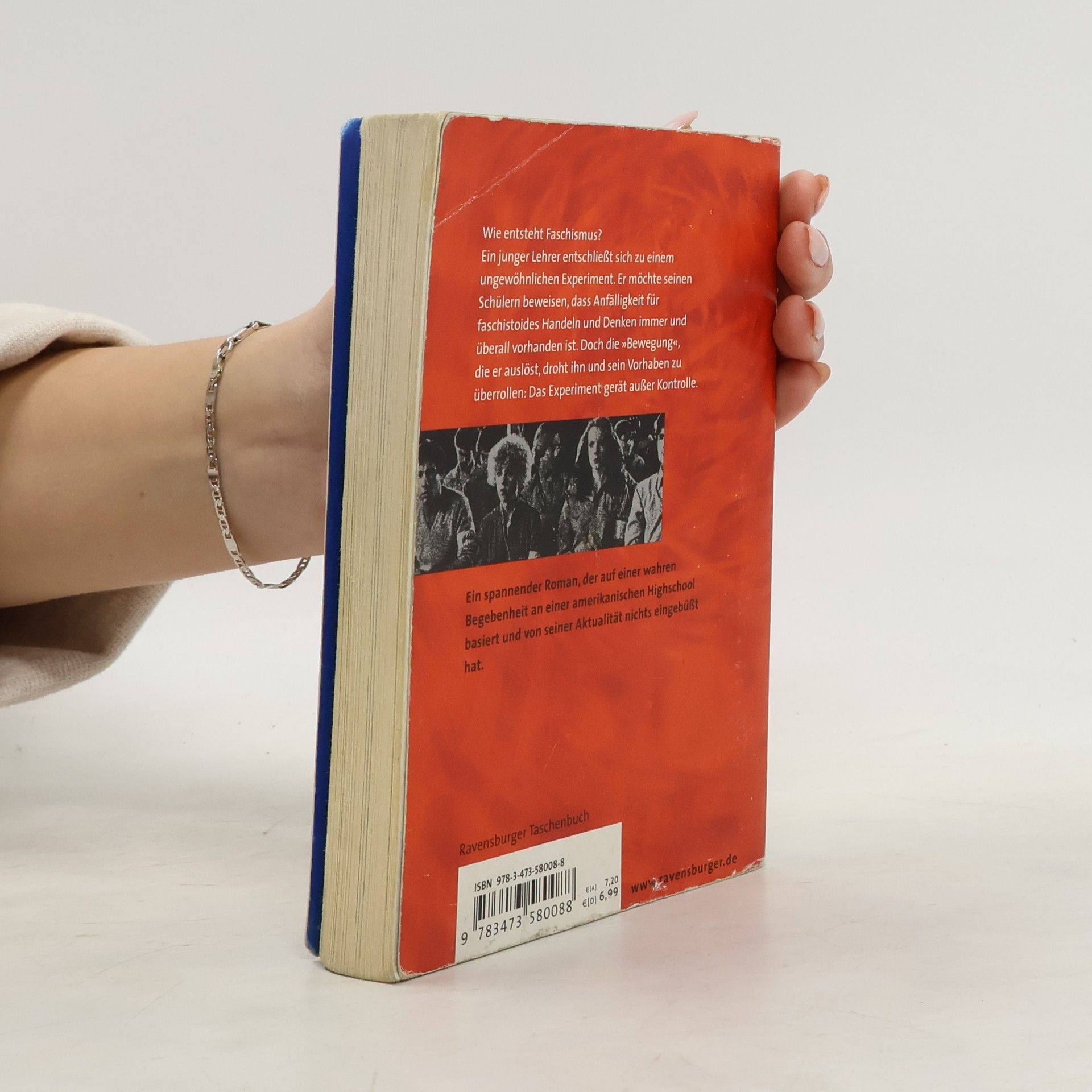 Der Jugendbuchbestseller zum Thema Rechtsextremismus, Faschismus und Nationalsozialismus Wie entsteht Faschismus? Als es im Geschichtsunterricht um Nationalsozialismus und Rechtsextremismus geht, beschließt ein junger Lehrer, ein ungewöhnliches Experiment durchzuführen. Er möchte seinen Schülern beweisen, dass Anfälligkeit für faschistoides Handeln und Denken nicht etwas ist, das nur andere Menschen betrifft – Faschismus ist hier mitten unter uns und in jedem von uns. Doch die „Bewegung“, die er auslöst, droht ihn und sein Vorhaben zu überrollen: Das Experiment gerät außer Kontrolle. Wichtig für den Schulunterricht: Seitenzählung unverändert! Morton Rhues Klassiker DIE WELLE beschreibt eindringlich und gegenwartsbezogen wie leicht Menschen verführt, manipuliert und instrumentalisieren werden können. Der Roman basiert auf wahren Begebenheiten an einer Highschool im kalifornischen Palo Alto. Zu diesem Buch gibt es „Materialien zur Unterrichtspraxis“ der Ravensburger Verlag GmbH.