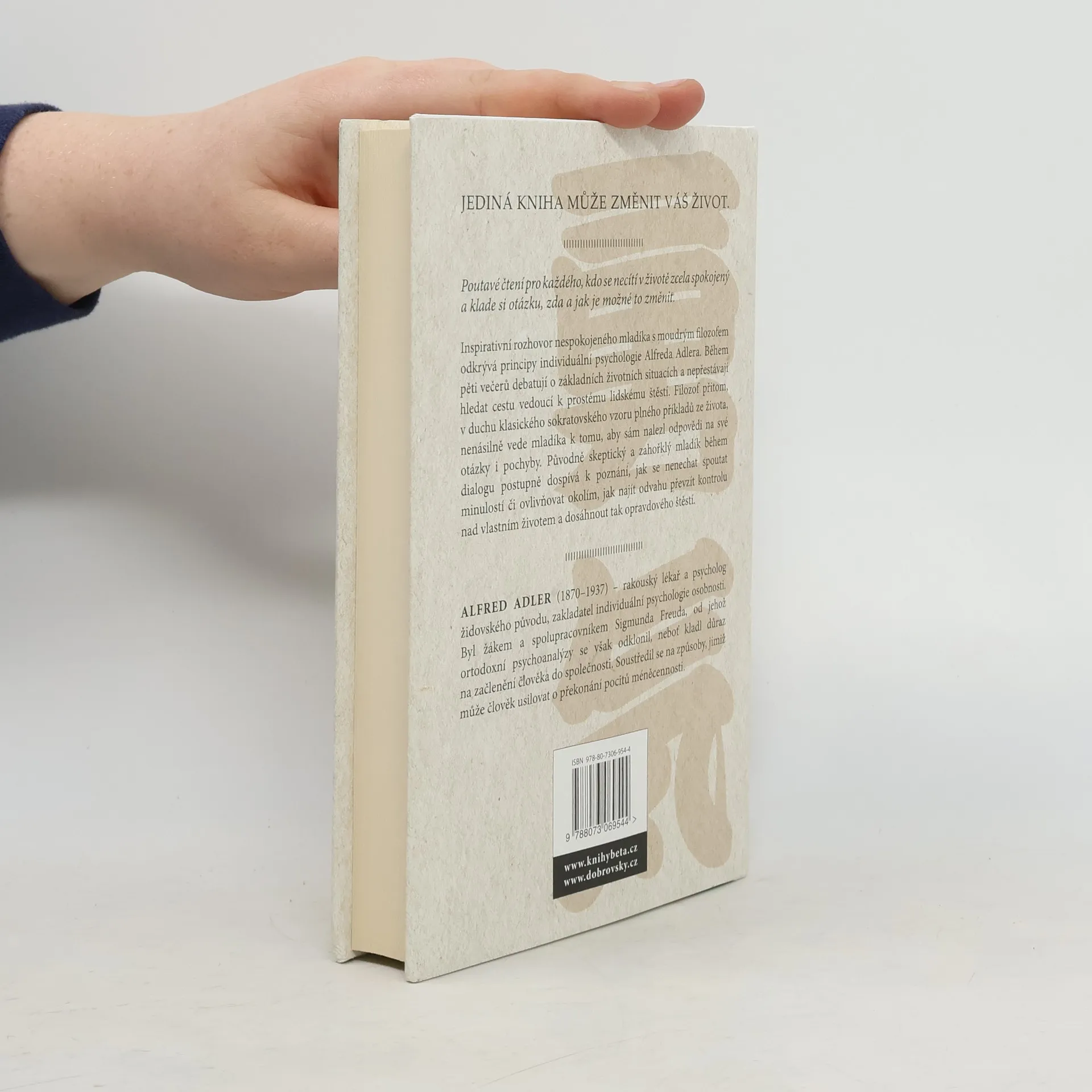 Rozhovor mezi moudrým filozofem a nespokojeným mladíkem odkrývá principy individuální psychologie Alfreda Adlera, rakouského psychologa přelomu 19. a 20. století. Během pěti večerů muži debatují o základních životních situacích a nepřestávají se ptát: Jak být šťastný? Původně skeptický chlapec postupně dospívá k poznání, jak se nenechat ovlivňovat okolím a převzít kontrolu nad vlastním životem. Kniha je poutavým čtením pro každého, kdo se necítí spokojený a klade si otázku, zda a jak je možné to změnit.