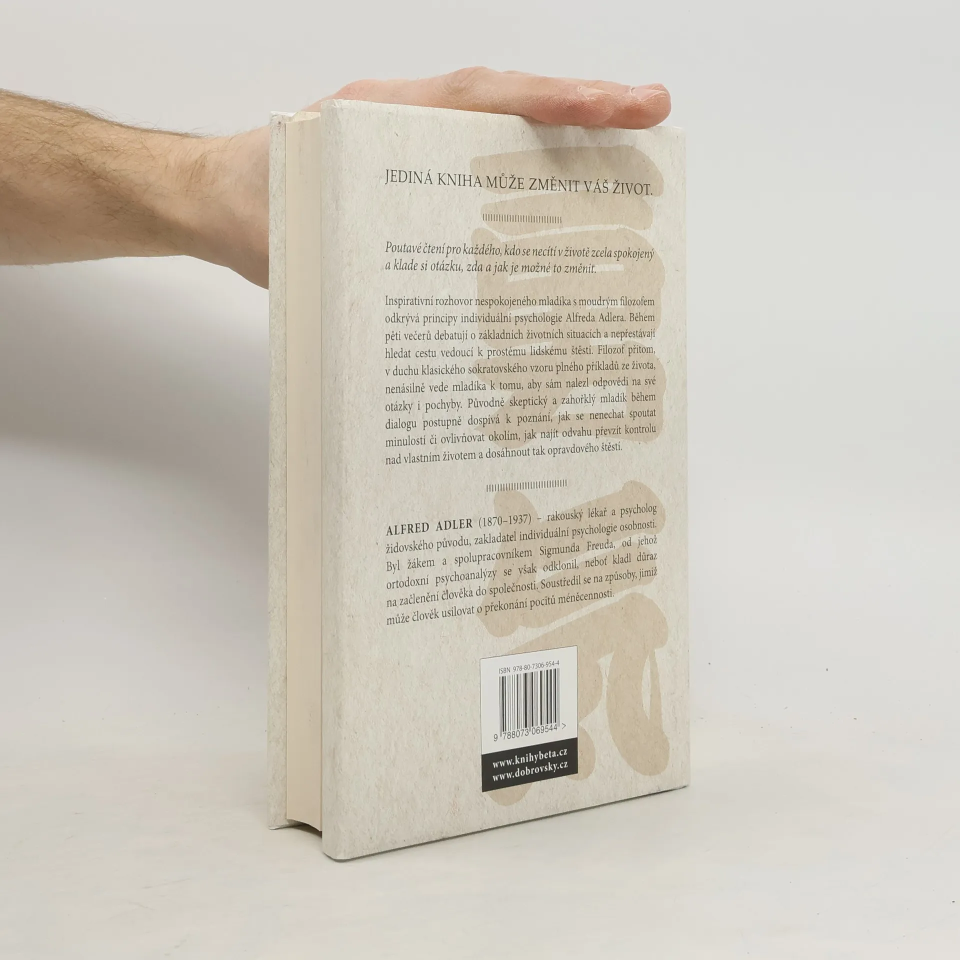 Rozhovor mezi moudrým filozofem a nespokojeným mladíkem odkrývá principy individuální psychologie Alfreda Adlera, rakouského psychologa přelomu 19. a 20. století. Během pěti večerů muži debatují o základních životních situacích a nepřestávají se ptát: Jak být šťastný? Původně skeptický chlapec postupně dospívá k poznání, jak se nenechat ovlivňovat okolím a převzít kontrolu nad vlastním životem. Kniha je poutavým čtením pro každého, kdo se necítí spokojený a klade si otázku, zda a jak je možné to změnit.