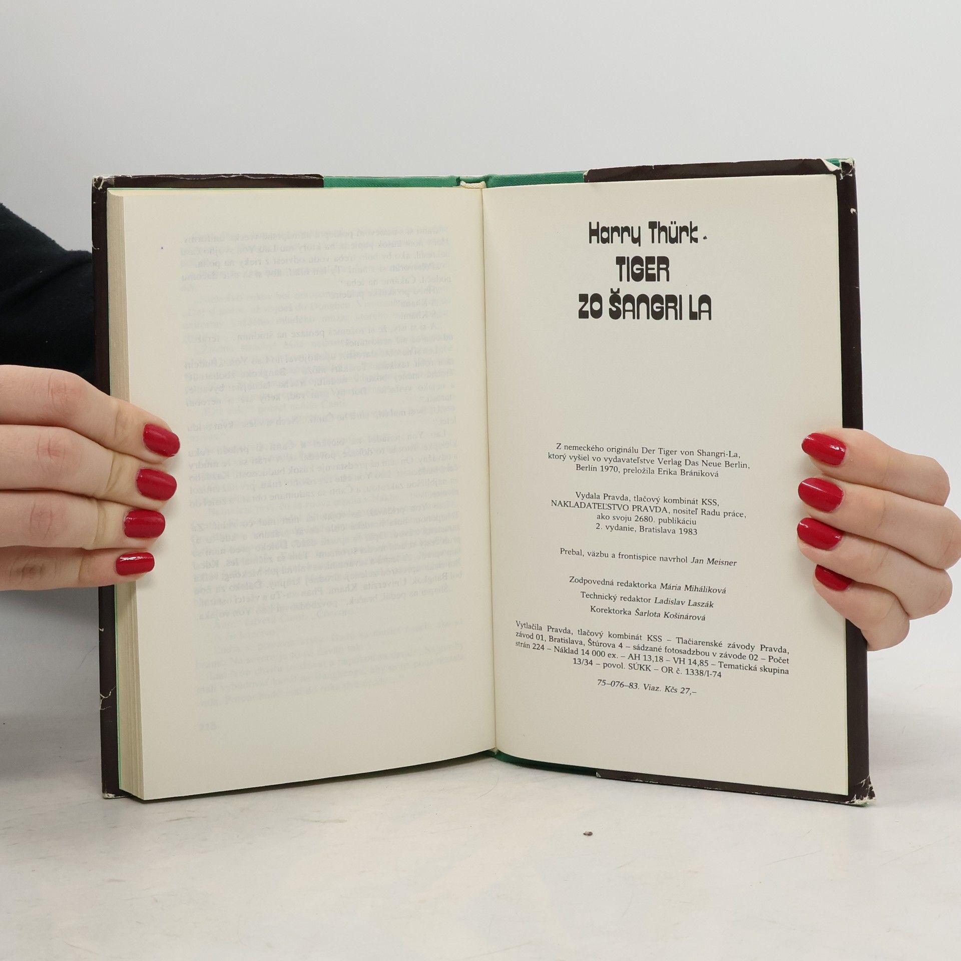 Harry Thurk, nemecký spisovateľ, získal si na Slovensku široký okruh čitateľov viacerými pútavými románmi, z ktorých spomeňme aspoň Hodinu mŕtvych očí, Dievča z džungle a Lotos na horiacich jazerách. Tak ako v posledných dvoch uvedených knihách, aj v románe Tiger zo Šangri La, ktorý vychádza v druhom vydaní, nás autor zavedie na indočínsky polostrov, do svojrázneho, exotického kúta našej zeme, do krajiny džungle, slonov a tisícich bájí. Ľudia v týchto končinách oddávna vedeli, čo je nadvláda silnejších, a ani v našom storočí ich neprestali gniaviť mocichtiví votrelci, nech to boli Japonci, Francúzi, Američania. Láska, túžba, ideály, starosti a radosti sú v týchto krajinách práve takými dôvernými sprievodcami života ako všade inde na svete. Aj hrdina nášho príbehu Lao Yon, syn roľníka z malej laoskej dedinky Nakhe, má veľké predsavzatia. Chce ako poľnohospodársky odborník zveľadiť ryžové polia a banánové háje v svojej vlasti, ktorá zvádza boj za oslobodenie spod americkej nadvlády. Zdá sa, že svoju túžbu vyštudovať v susednom Thajsku uskutoční, kým jedného dňa neuvidí v televíznej reportáži tvár svojho otca. . . Študentské povinnosti vystrieda práca vyzvedača. Úspešnosť knihy Tiger zo Šangri La zaručila autorovi dôverná znalosť prostredia a mentality národov Indočíny, zanietenie pre ich spravodlivý boj, ako aj dar šikovného rozprávača.