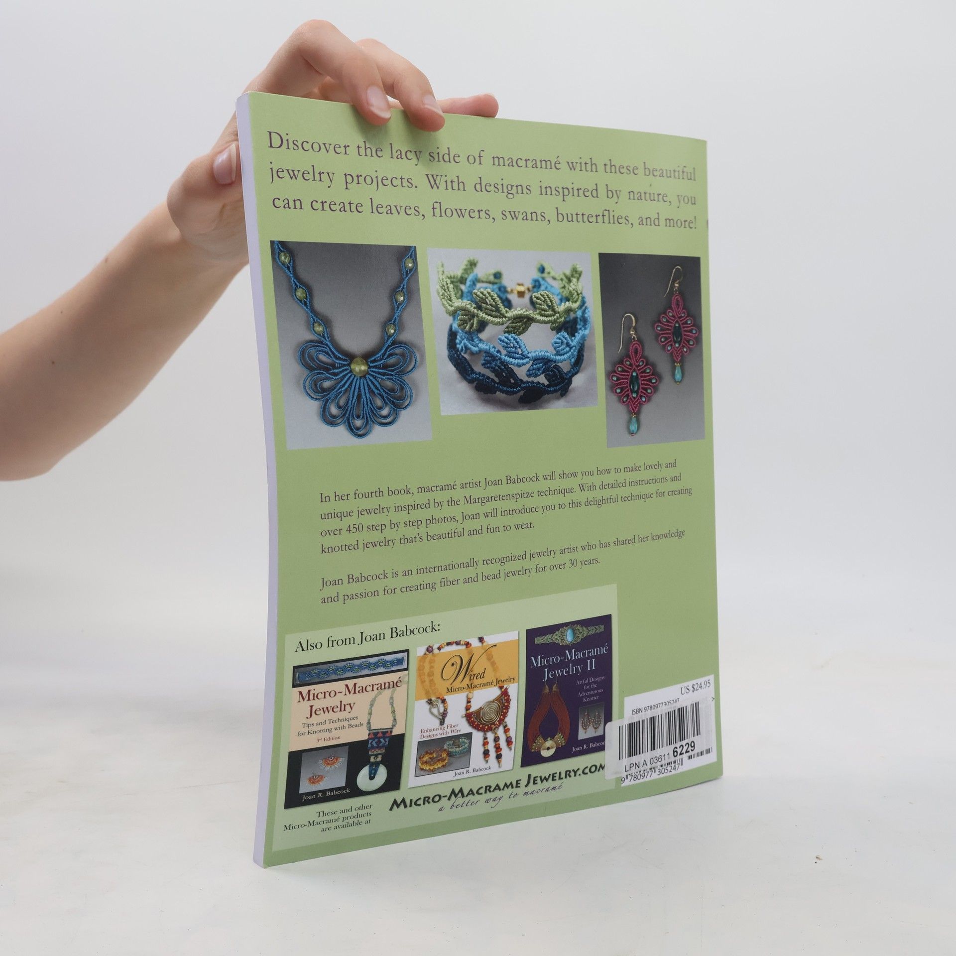 Discover the lacy side of macrame with these beautiful jewelry projects. With designs inspired by nature, you can create leaves, flowers, swans, butterflies, and more!In her fourth book, macrame artist Joan Babcock will show you how to make lovely and unique jewelry inspired by the Margaretenspitze technique. With detailed instructions and over 450 step by step photos, Joan will introduce you to this delightful technique for creating knotted jewelry that’s beautiful and fun to wear.Joan Babcock is an internationally recognized jewelry artist who has shared her knowledge and passion for creating fiber and bead jewelry for over 30 years.
