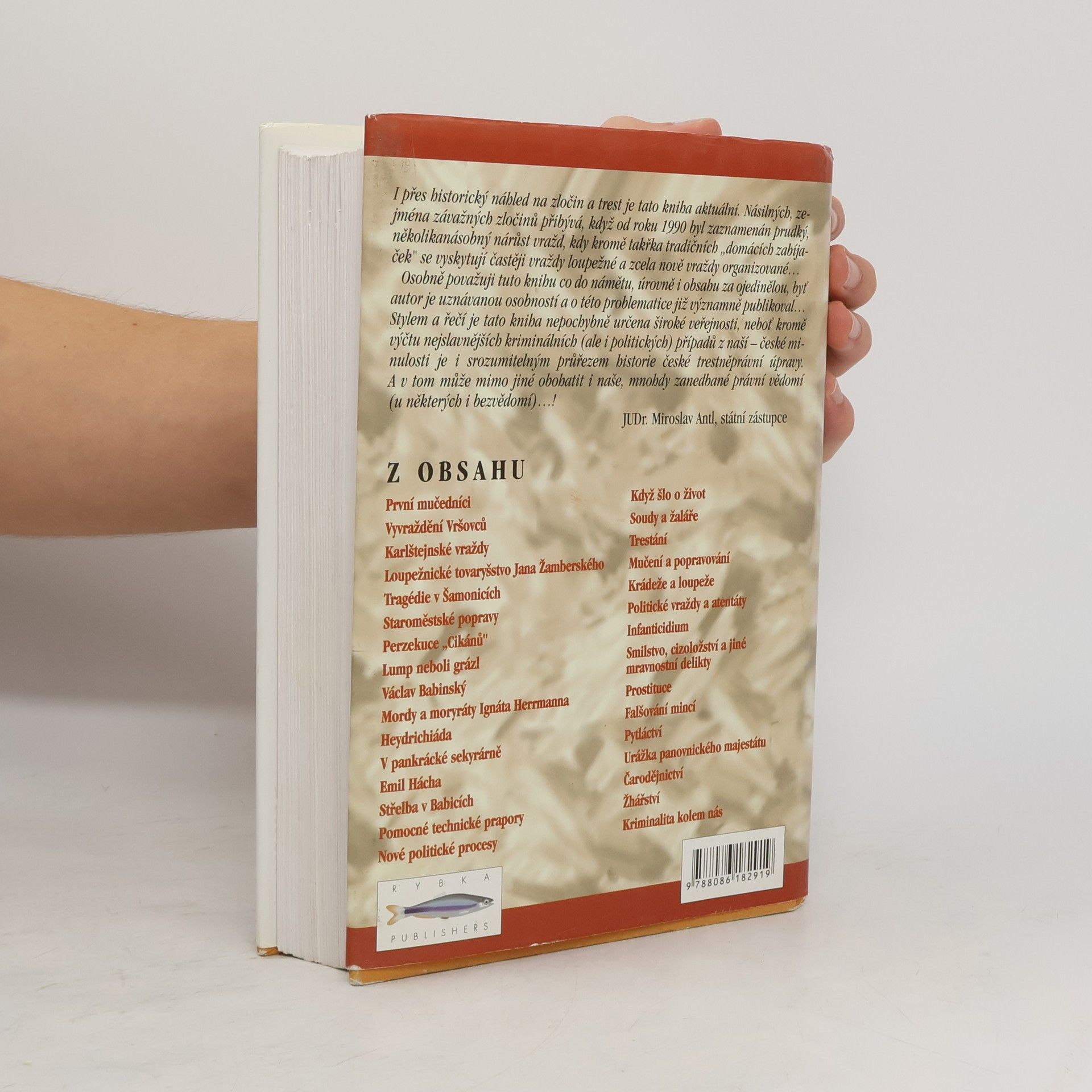 Kniha předestírá čtenářům historický obraz zločinnosti v českých zemích od raného středověku do druhé poloviny 20. století. PhDr. Jindřich Francek ve své dosud nejrozsáhlejší práci popisuje všechny druhy kriminality, ať už jde o vraždy, loupeže, smilstvo, čarodějnictví, žhářství, zrady, atentáty i politické represe prováděné nacistickými okupanty nebo vykonavateli komunistické justice, a líčí jejich trestní postihování na pozadí českých dějin.