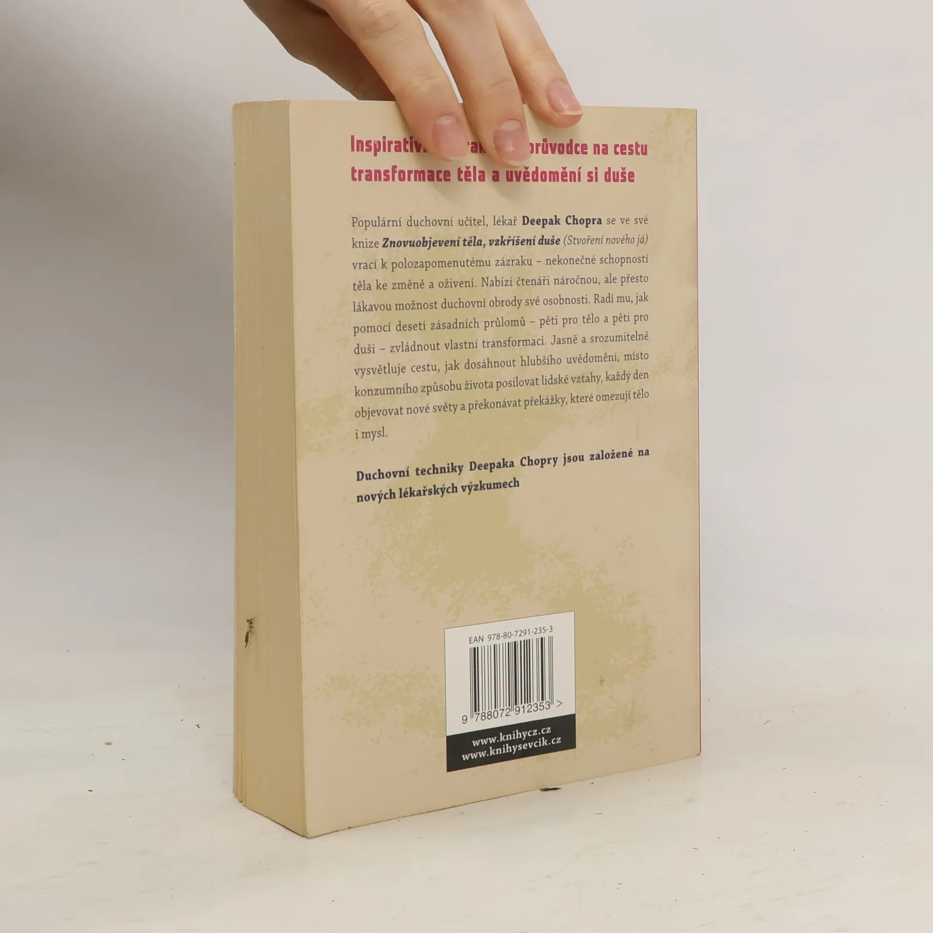 Populární duchovní učitel a lékař zve čtenáře na poutavou, svým způsobem náročnou, ale přesto lákavou cestu duchovní obrody osobnosti. Předkládá jim nejprve originální možnost pochopení vztahu k vlastnímu tělu a následně nový pohled na úlohu lidské duše, odlišující se od jejího nedokonalého obrazu, jak nám jej podávají představy tradované světovými náboženstvími. Autor však nezůstává jen u poutavého výkladu, ale jak je jeho dobrým zvykem, nabízí konkrétní návody, s jejichž pomocí může každý ve své životní praxi toto nové pojetí úlohy těla a duše uplatnit.