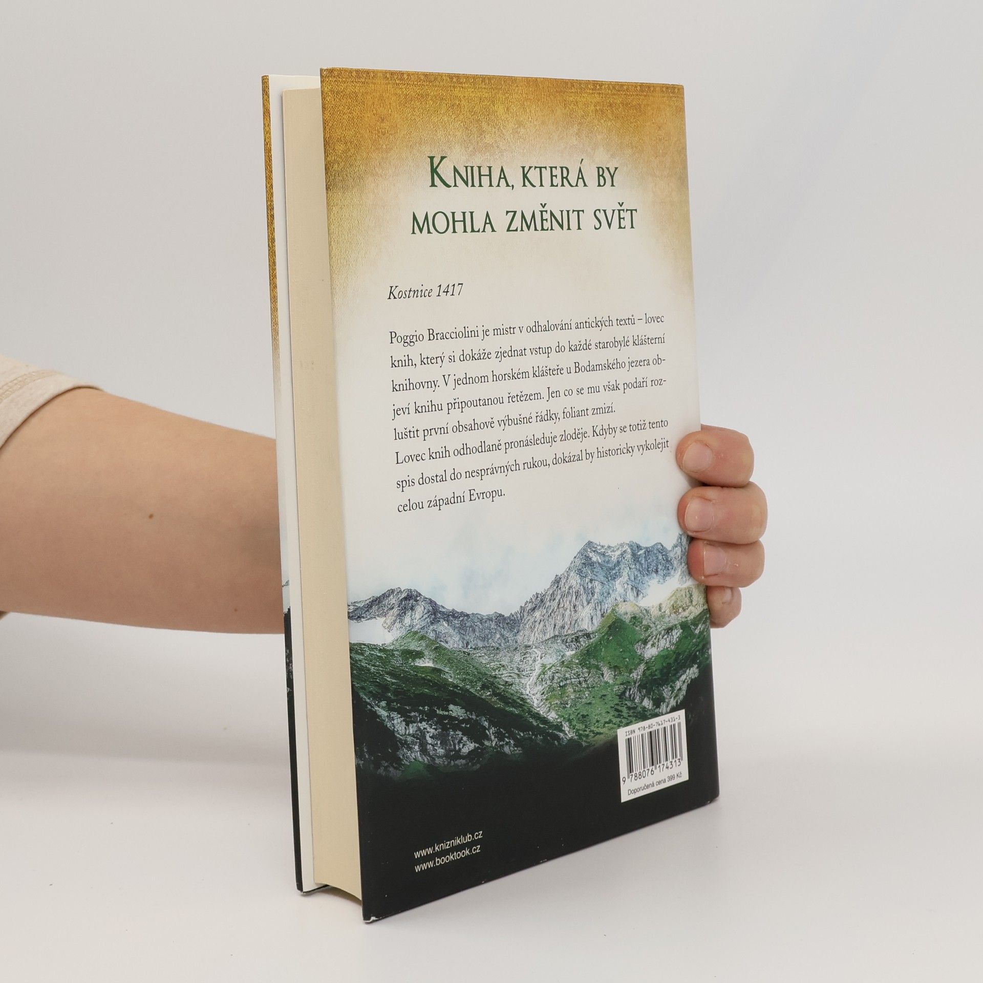 Kostnice 1417. Poggio Bracciolini je mistr v odhalování antických textů – lovec knih, který si dokáže zjednat vstup do každé starobylé klášterní knihovny. V jednom horském klášteře u Bodamského jezera objeví knihu připoutanou řetězem. Jen co se mu však podaří rozluštit první obsahově výbušné řádky, foliant zmizí. Lovec knih odhodlaně pronásleduje zloděje. Kdyby se totiž tento spis dostal do nesprávných rukou, dokázal by historicky vykolejit celou západní Evropu.